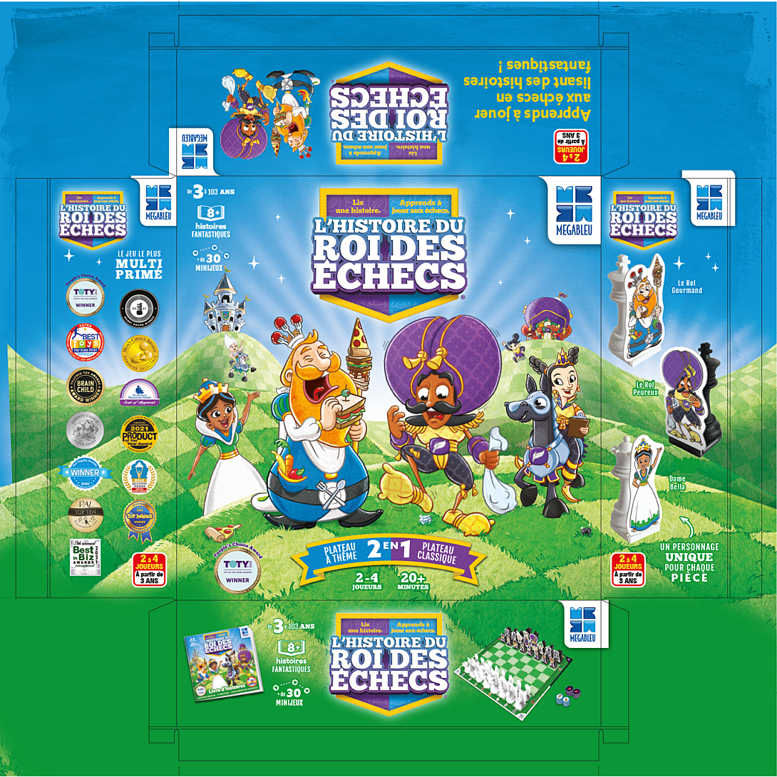 Apprends à jouer aux échecs en lisant des histoires fantastiques ! Le roi des échecs® est un jeu simple et amusant pour apprendre aux enfants à jouer aux échecs. Il se base sur des histoires stimulantes, des personnages hauts en couleur et des mini-jeux très simples. Les enfants apprennent à jouer aux échecs avec leurs parents en lisant de belles histoires d’un royaume imaginaire racontées dans un livre inclus dans ce jeu simple et amusant. Un programme d’apprentissage des échecs qui a fait ses preuves et a été récompensé par de nombreux prix à travers le monde ! Les joueurs plus expérimentés peuvent également jouer aux échecs classiques en retirant les découpes des personnages et en retournant l’échiquier sur la face normale.