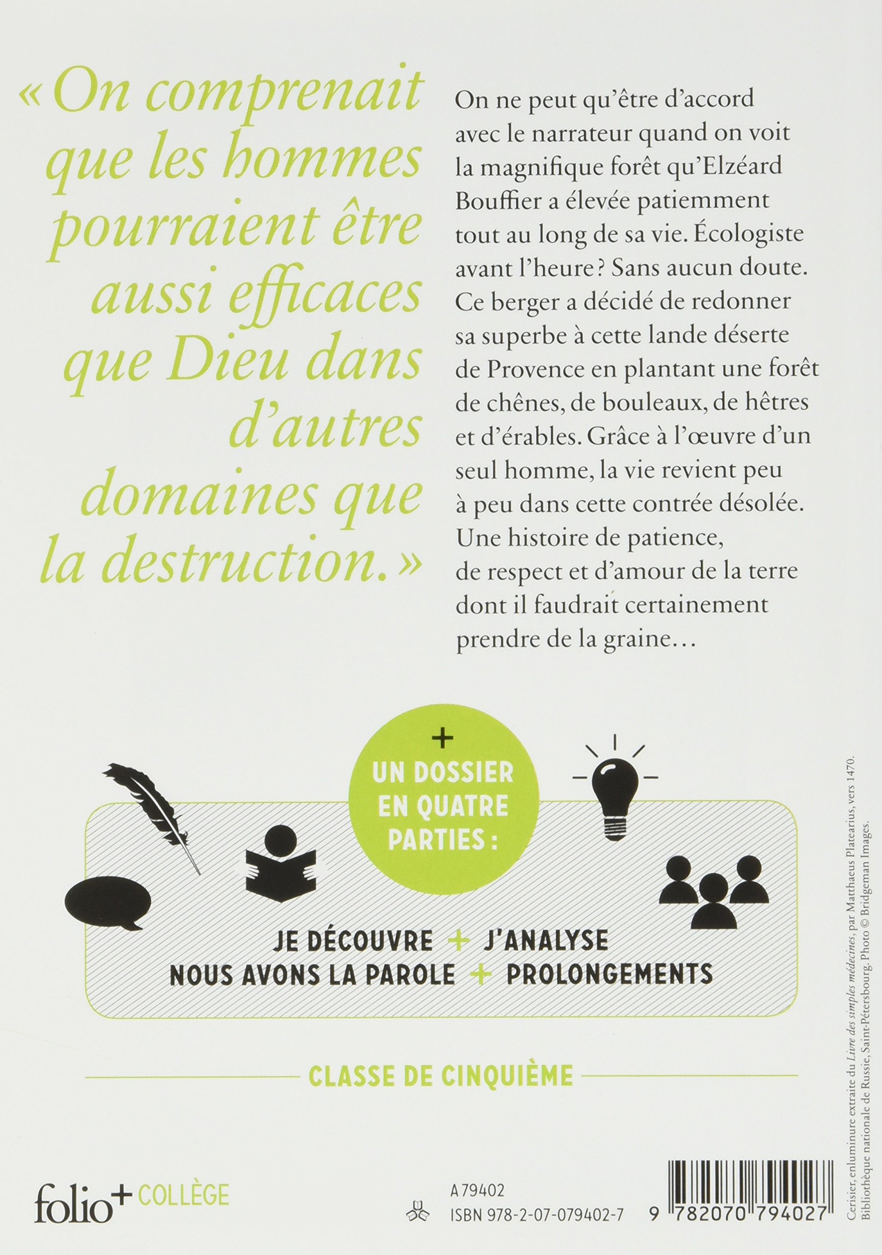 On ne peut qu'être d'accord avec le narrateur quand on voit la magnifique forêt qu'Elzéard Bouffier a élevée patiemment tout au long de sa vie. Écologiste avant l'heure ? Sans aucun doute. Ce berger a décidé de redonner sa superbe à cette lande déserte de Provence en plantant une forêt de chênes, de bouleaux, de hêtres et d'érables. Grâce à l'oeuvre d'un seul homme, la vie revient peu à peu dans cette contrée désolée. Une histoire de patience, de respect et d'amour de la terre dont il faudrait certainement prendre de la graine...