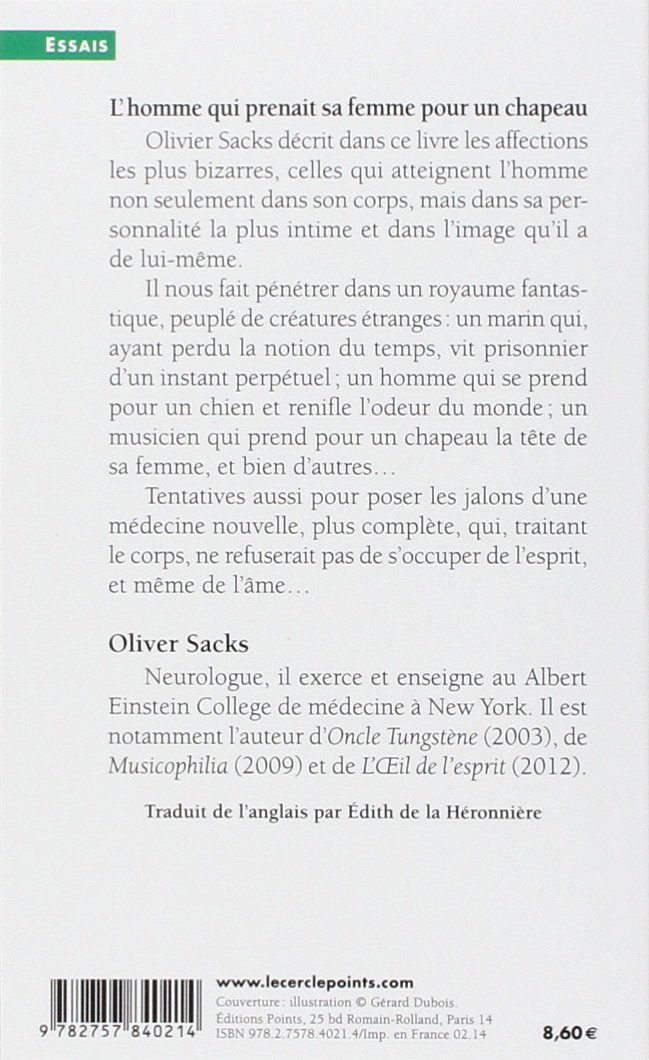 | Libellé | L'Homme qui prenait sa femme pour un chapeau - et autres récits cliniques (Broché) |