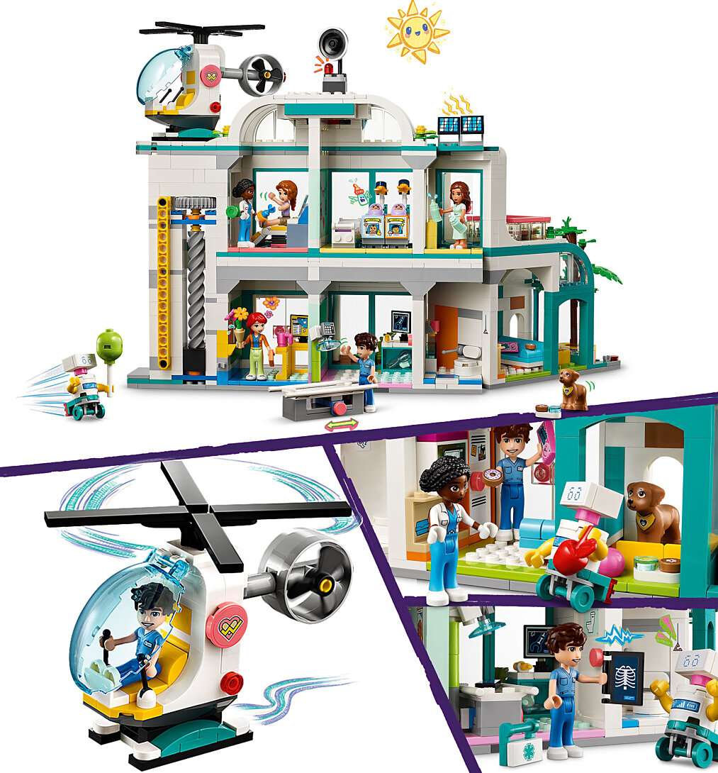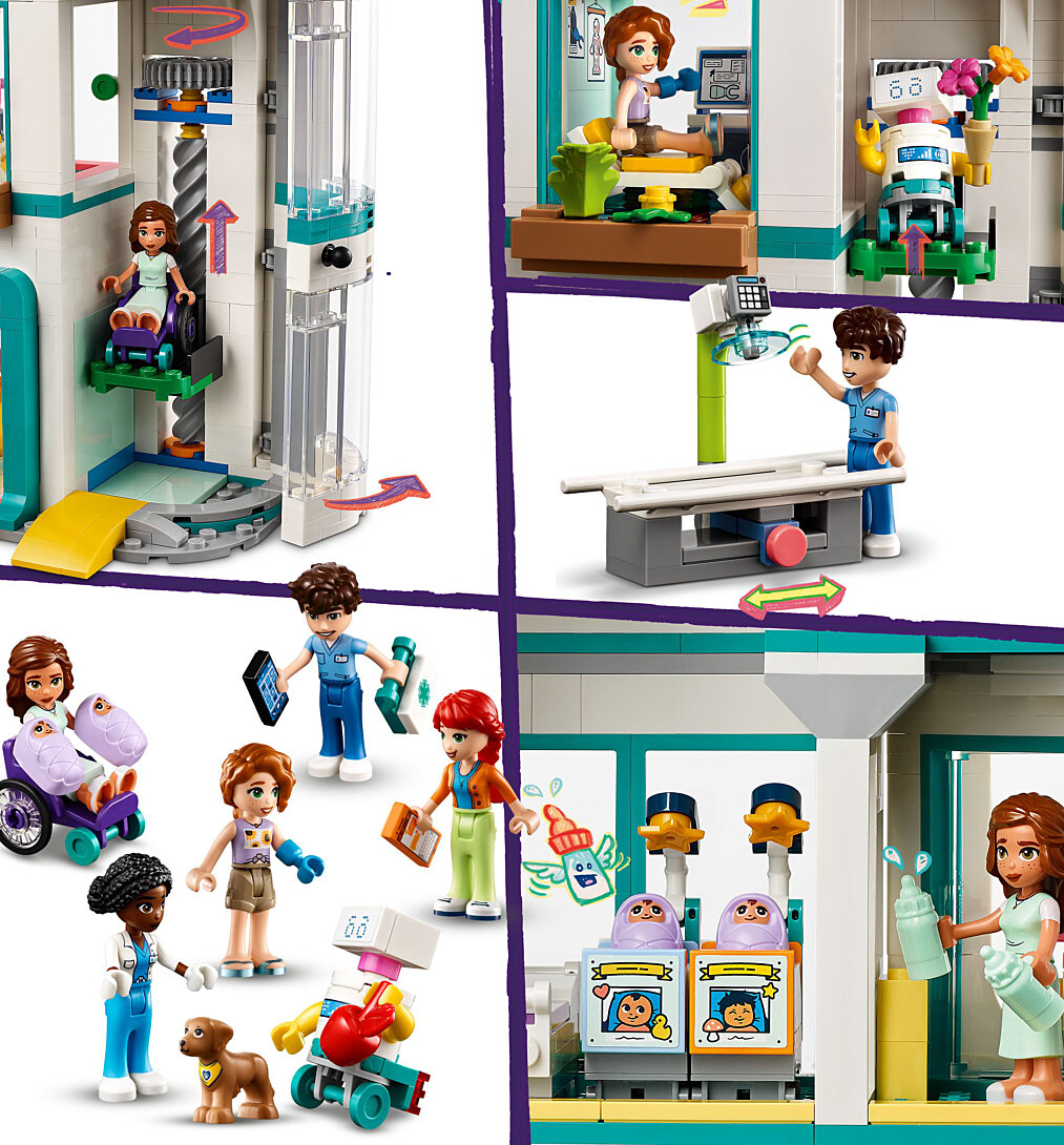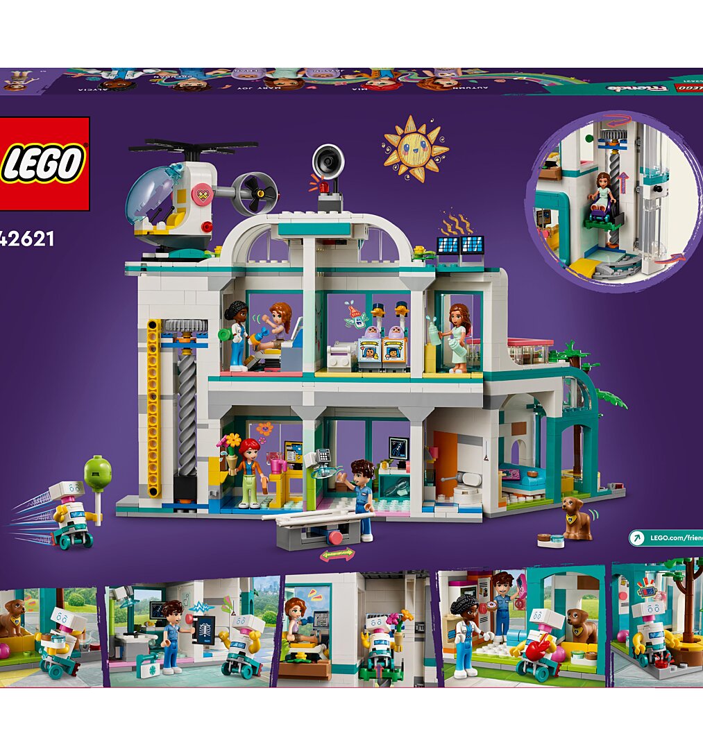 Pour les enfants qui aiment jouer à être médecins, l'hôpital LEGO Friends Heartlake City (42621) offre beaucoup à découvrir. Ce jouet médical LEGO pour les enfants de 7 ans invite les filles et les garçons à jouer à de nombreux jeux de rôle. Dans le bâtiment LEGO, de nombreux espaces et stations sont semblables à ceux que l'on trouve dans de vrais hôpitaux, tels qu'une salle de traitement, une salle d'accouchement, une salle de radiographie et une salle de repos pour le personnel. Vivez des histoires passionnantes : LEGO Friends Autumn se fait ajuster un nouveau bras prothétique et l'ascenseur fonctionnel emmène les enfants à la salle d'accouchement, où ils peuvent rendre visite aux nouveau-nés. La salle de traitement et la salle de repos offrent de nombreuses autres possibilités d'histoires. Un appareil de radiographie, des instruments médicaux et des cadeaux pour les patients ne sont que quelques-uns des accessoires inclus. De plus, vous trouverez un jouet hélicoptère pour enfants avec une aire d'atterrissage, ainsi qu'un robot assistant et un chien thérapeute LEGO Friends. Cet hôpital LEGO Friends est une excellente idée cadeau pour les enfants créatifs et comprend de nombreux accessoires, 5 figurines LEGO Friends, 2 bébés et un chien LEGO Friends. La maison de poupées convient particulièrement comme cadeau d'anniversaire pour les enfants.