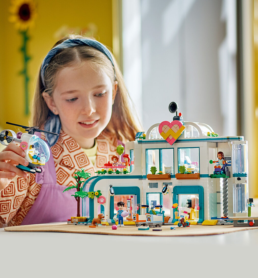 Pour les enfants qui aiment jouer à être médecins, l'hôpital LEGO Friends Heartlake City (42621) offre beaucoup à découvrir. Ce jouet médical LEGO pour les enfants de 7 ans invite les filles et les garçons à jouer à de nombreux jeux de rôle. Dans le bâtiment LEGO, de nombreux espaces et stations sont semblables à ceux que l'on trouve dans de vrais hôpitaux, tels qu'une salle de traitement, une salle d'accouchement, une salle de radiographie et une salle de repos pour le personnel. Vivez des histoires passionnantes : LEGO Friends Autumn se fait ajuster un nouveau bras prothétique et l'ascenseur fonctionnel emmène les enfants à la salle d'accouchement, où ils peuvent rendre visite aux nouveau-nés. La salle de traitement et la salle de repos offrent de nombreuses autres possibilités d'histoires. Un appareil de radiographie, des instruments médicaux et des cadeaux pour les patients ne sont que quelques-uns des accessoires inclus. De plus, vous trouverez un jouet hélicoptère pour enfants avec une aire d'atterrissage, ainsi qu'un robot assistant et un chien thérapeute LEGO Friends. Cet hôpital LEGO Friends est une excellente idée cadeau pour les enfants créatifs et comprend de nombreux accessoires, 5 figurines LEGO Friends, 2 bébés et un chien LEGO Friends. La maison de poupées convient particulièrement comme cadeau d'anniversaire pour les enfants.