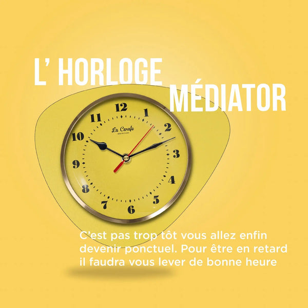 Avec son design des années 60 et son mécanisme quartz, vous pouvez compter sur « La Carafe » pour vous promettre la ponctualité et le bien-être. Grâce à sa variété de couleurs, il ajoutera une touche d’originalité et d’originalité à votre décor, réveillant l’atmosphère de votre pièce et lui donnant un petit air ancien-moderne.
