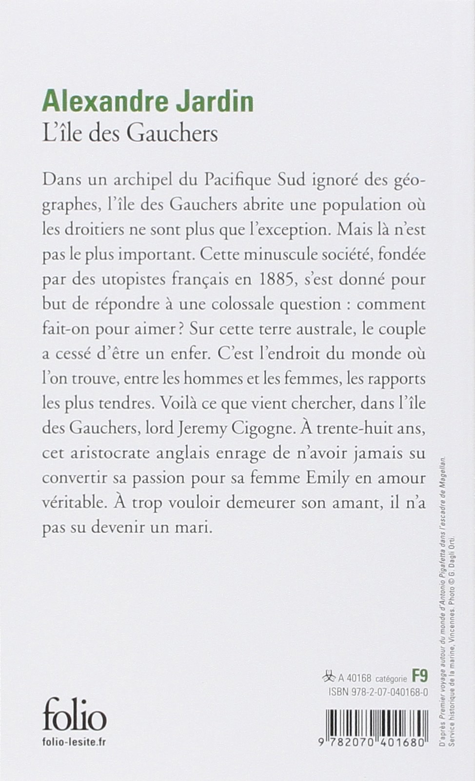 Sur l'île des Gauchers, ignorée des géographes, les droitiers ne sont plus que l'exception. Cette minuscule société, fondée par des utopistes français en 1885, s'est donné pour but de répondre à une colossale question : comment fait-on pour aimer? A trente-huit ans, lord Jeremy et sa femme Emily, pour laquelle il n'a jamais su convertir sa passion en amour, tentent l'aventure des Gauchers.