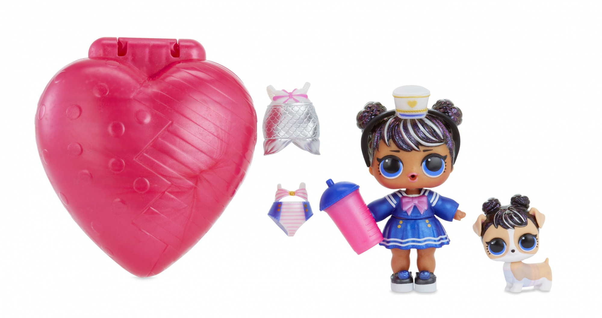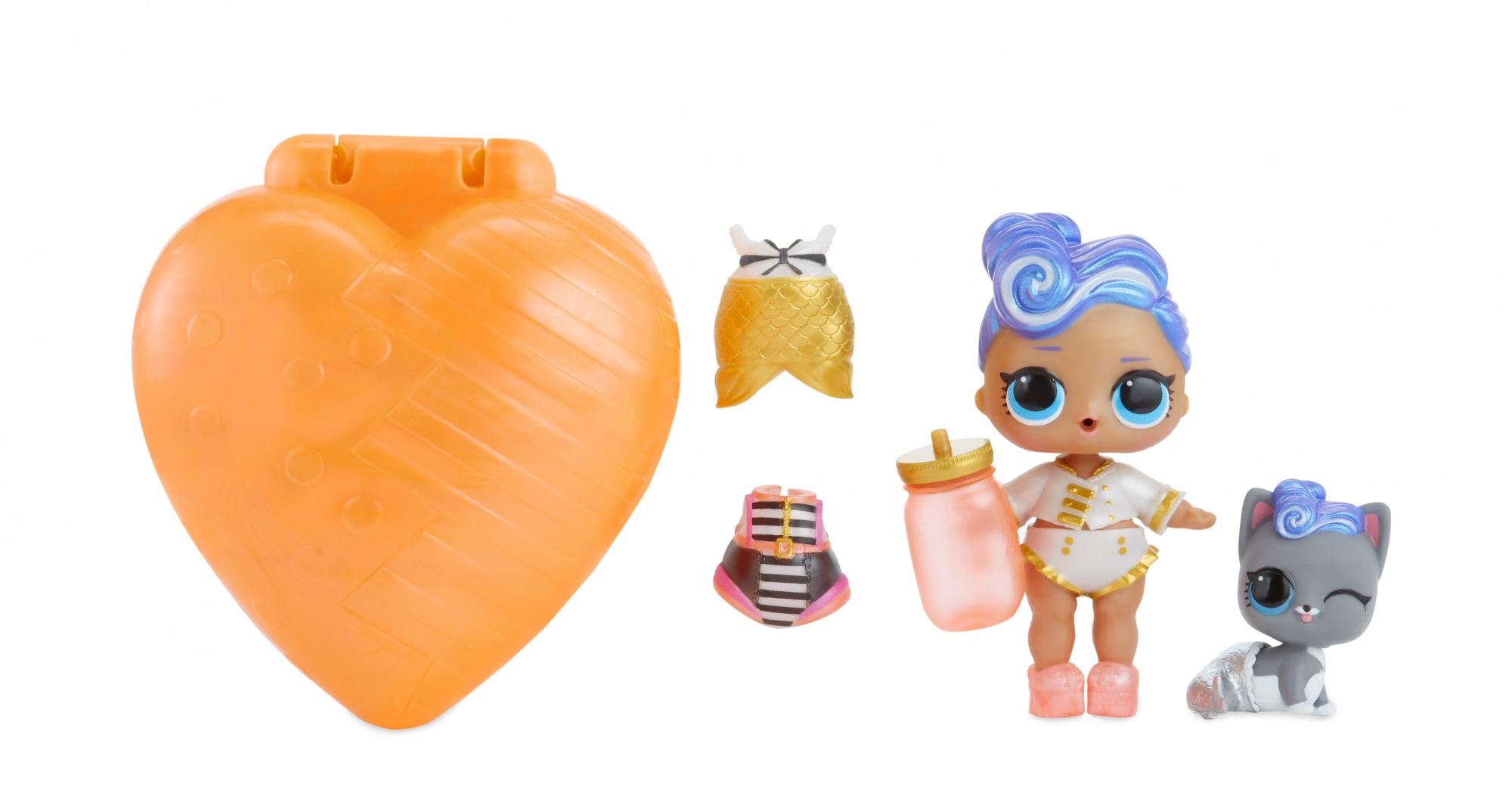Coffret L.O.L. avec 1 cur bicolore effervescent révélant 1 cur, 1 poupée et 1 Pets éditions limitées. Inclus 6 boules surprises avec parfois du sable. Coffret transformable en sac ou espace de jeu. Le cur fait présentoir pour ta poupée. Fonction eau surprise. Livret inclus. Modèles assortis. Dès 3 ans.