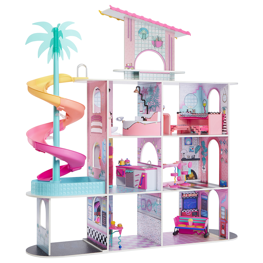 L.O.L. Surprise House a été complétement redécorée pour cette nouvelle année! Parfaites pour toutes tes les tailles de poupées LOL Surprise! Elle mesure toujours 1.20m de haut et est sur 3 étages et un rooftop! Nous avons juste revue la décoration intérieure pour apporter une souffle nouveau à notre belle maison!