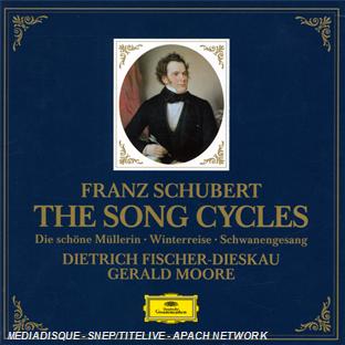 | Liste des pistes | 3.1 . le chant du cygne : liebesbotschaft (ludwig rellstab) - Fischer-Dieskau, Dietrich,Schubert, Franz,Moore, Gerald 3.2 . le chant du cygne : kriegers ahnung (ludwig rellstab) - Fischer-Dieskau, Dietrich,Schubert, Franz,Moore, Gerald 3.3 . le chant du cygne : fruhlingssehnsucht (ludwig rellstab) - Fischer-Dieskau, Dietrich,Schubert, Franz,Moore, Gerald 3.4 . le chant du cygne : ständchen (ludwig rellstab) - Fischer-Dieskau, Dietrich,Schubert, Franz,Moore, Gerald 3.5 . le chant du cygne : aufenthalt (ludwig rellstab) - Fischer-Dieskau, Dietrich,Schubert, Franz,Moore, Gerald 3.6 . le chant du cygne : in der ferne (ludwig rellstab) - Fischer-Dieskau, Dietrich,Schubert, Franz,Moore, Gerald 3.7 . le chant du cygne : abschied (ludwig rellstab) - Fischer-Dieskau, Dietrich,Schubert, Franz,Moore, Gerald 3.8 . le chant du cygne : der atlas (heinrich heine) - Fischer-Dieskau, Dietrich,Schubert, Franz,Moore, Gerald 3.9 . le chant du cygne : ihr bild (heinrich heine) - Fischer-Dieskau, Dietrich,Schubert, Franz,Moore, Gerald 3.10 . le chant du cygne : das fischermadchen (heinrich heine) - Fischer-Dieskau, Dietrich,Schubert, Franz,Moore, Gerald 3.11 . le chant du cygne : die stadt (heinrich heine) - Fischer-Dieskau, Dietrich,Schubert, Franz,Moore, Gerald 3.12 . le chant du cygne : am meer (heinrich heine) - Fischer-Dieskau, Dietrich,Schubert, Franz,Moore, Gerald 3.13 . le chant du cygne : der doppelgänger (heinrich heine) - Fischer-Dieskau, Dietrich,Schubert, Franz,Moore, Gerald 3.14 . le chant du cygne : die taubenpost (johann gabriel seidl) - Fischer-Dieskau, Dietrich,Schubert, Franz,Moore, Gerald 2.1 . winterreise d.911 01 gute nacht - Fischer-Dieskau, Dietrich,Schubert, Franz,Moore, Gerald 2.2 . winterreise d.911 02 die wetterfahne - Fischer-Dieskau, Dietrich,Schubert, Franz,Moore, Gerald 2.3 . winterreise d.911 03 gefrorne tränen - Fischer-Dieskau, Dietrich,Schubert, Franz,Moore, Gerald 2.4 . winterreise d.911 04 erstarrung - Fischer-Dieskau, Dietrich,Schubert, Franz,Moore, Gerald 2.5 . winterreise d.911 05 der lindenbaum - Fischer-Dieskau, Dietrich,Schubert, Franz,Moore, Gerald 2.6 . winterreise d.911 06 wasserflut - Fischer-Dieskau, Dietrich,Schubert, Franz,Moore, Gerald 2.7 . winterreise d.911 07 auf dem flusse - Fischer-Dieskau, Dietrich,Schubert, Franz,Moore, Gerald 2.8 . winterreise d.911 08 rückblick - Fischer-Dieskau, Dietrich,Schubert, Franz,Moore, Gerald 2.9 . winterreise d.911 09 irrlicht - Fischer-Dieskau, Dietrich,Schubert, Franz,Moore, Gerald 2.10 . winterreise d.911 10 rast - Fischer-Dieskau, Dietrich,Schubert, Franz,Moore, Gerald 2.11 . winterreise d.911 11 frühlingstraum - Fischer-Dieskau, Dietrich,Schubert, Franz,Moore, Gerald 2.12 . winterreise d.911 12 einsamkeit - Fischer-Dieskau, Dietrich,Schubert, Franz,Moore, Gerald 2.13 . winterreise d.911 13 die post - Fischer-Dieskau, Dietrich,Schubert, Franz,Moore, Gerald 2.14 . winterreise d.911 14 der greise kopf - Fischer-Dieskau, Dietrich,Schubert, Franz,Moore, Gerald 2.15 . winterreise d.911 15 die krähe - Fischer-Dieskau, Dietrich,Schubert, Franz,Moore, Gerald 2.16 . winterreise d.911 16 letzte hoffnung - Fischer-Dieskau, Dietrich,Schubert, Franz,Moore, Gerald 2.17 . winterreise d.911 17 im dorfe - Fischer-Dieskau, Dietrich,Schubert, Franz,Moore, Gerald 2.18 . winterreise d.911 18 der stürmische morgen - Fischer-Dieskau, Dietrich,Schubert, Franz,Moore, Gerald 2.19 . winterreise d.911 19 täuschung - Fischer-Dieskau, Dietrich,Schubert, Franz,Moore, Gerald 2.20 . winterreise d.911 20 der wegweiser - Fischer-Dieskau, Dietrich,Schubert, Franz,Moore, Gerald 2.21 . winterreise d.911 21 das wirtshaus - Fischer-Dieskau, Dietrich,Schubert, Franz,Moore, Gerald 2.22 . winterreise d.911 22 mut - Fischer-Dieskau, Dietrich,Schubert, Franz,Moore, Gerald 2.23 . winterreise d.911 23 die nebensonnen - Fischer-Dieskau, Dietrich,Schubert, Franz,Moore, Gerald 2.24 . winterreise d.911 24 der leiermann - Fischer-Dieskau, Dietrich,Schubert, Franz,Moore, Gerald 1.1 . la belle meunière : das wandern - Fischer-Dieskau, Dietrich,Schubert, Franz,Moore, Gerald 1.2 . la belle meunière : wohin? - Fischer-Dieskau, Dietrich,Schubert, Franz,Moore, Gerald 1.3 . la belle meunière : halt! - Fischer-Dieskau, Dietrich,Schubert, Franz,Moore, Gerald 1.4 . la belle meunière : danksagung an den bach - Fischer-Dieskau, Dietrich,Schubert, Franz,Moore, Gerald 1.5 . la belle meunière : am feierabend - Fischer-Dieskau, Dietrich,Schubert, Franz,Moore, Gerald 1.6 . la belle meunière : der neugierige - Fischer-Dieskau, Dietrich,Schubert, Franz,Moore, Gerald 1.7 . la belle meunière : ungeduld - Fischer-Dieskau, Dietrich,Schubert, Franz,Moore, Gerald 1.8 . la belle meunière : morgengruß - Fischer-Dieskau, Dietrich,Schubert, Franz,Moore, Gerald 1.9 . la belle meunière : des müllers blumen - Fischer-Dieskau, Dietrich,Schubert, Franz,Moore, Gerald 1.10 . la belle meunière : tränenregen - Fischer-Dieskau, Dietrich,Schubert, Franz,Moore, Gerald 1.11 . la belle meunière : mein! - Fischer-Dieskau, Dietrich,Schubert, Franz,Moore, Gerald 1.12 . la belle meunière : pause - Fischer-Dieskau, Dietrich,Schubert, Franz,Moore, Gerald 1.13 . la belle meunière : mit dem grünen lautenbande - Fischer-Dieskau, Dietrich,Schubert, Franz,Moore, Gerald 1.14 . la belle meunière : der jäger - Fischer-Dieskau, Dietrich,Schubert, Franz,Moore, Gerald 1.15 . la belle meunière : eifersucht und stolz - Fischer-Dieskau, Dietrich,Schubert, Franz,Moore, Gerald 1.16 . la belle meunière : die liebe farbe - Fischer-Dieskau, Dietrich,Schubert, Franz,Moore, Gerald 1.17 . la belle meunière : die bose farbe - Fischer-Dieskau, Dietrich,Schubert, Franz,Moore, Gerald 1.18 . la belle meunière : trockne blumen - Fischer-Dieskau, Dietrich,Schubert, Franz,Moore, Gerald 1.19 . la belle meunière : der müller und der bach - Fischer-Dieskau, Dietrich,Schubert, Franz,Moore, Gerald 1.20 . la belle meunière : des baches wiegenlied - Fischer-Dieskau, Dietrich,Schubert, Franz,Moore, Ger