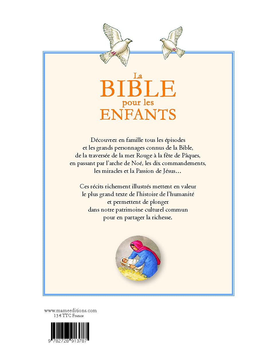 C’est un livre adapté aux enfants. Attention à certaines images quand même. L’histoire de Caïn et Abel m’a choqué. Des mots « dur » et l’image du frère à terre et en sang. J’ai préféré tourner la page. Mon enfant n’a que 4 ans. Il faut l’aide d’un parent pour expliquer et aider à la compréhension des morals.