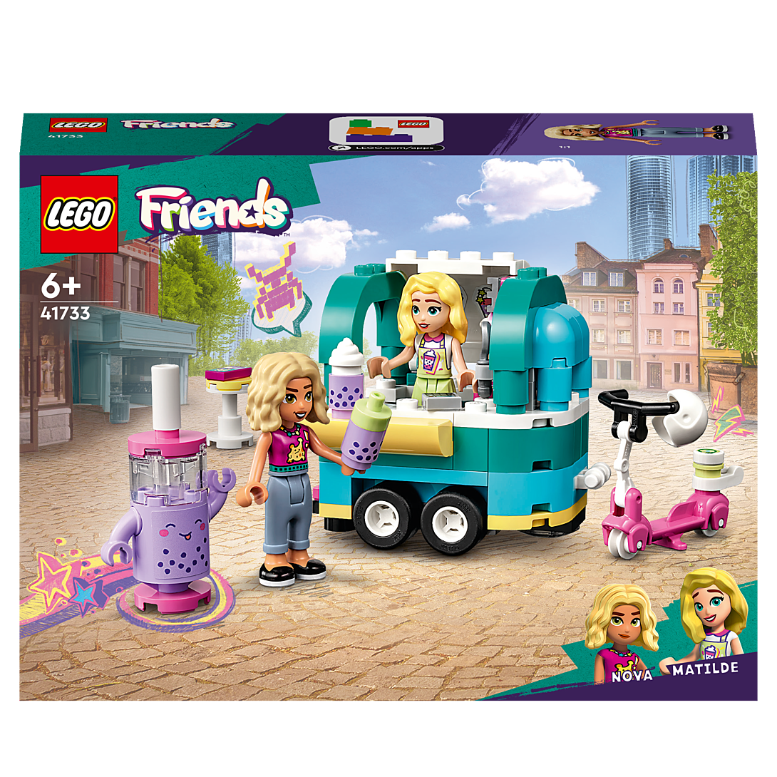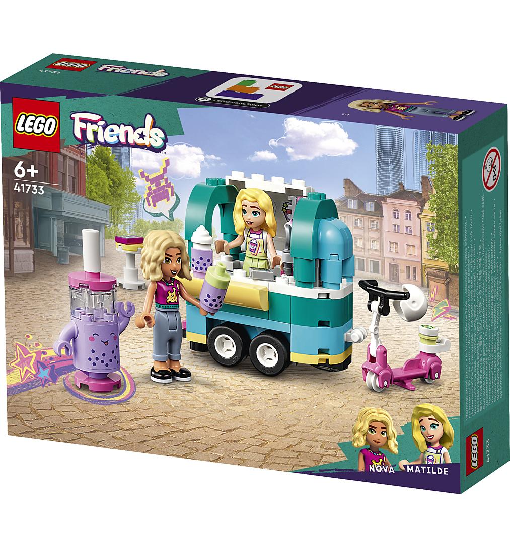 La boîte contient • Stand de bubble tea pour les enfants de 6 ans et plus – Initiez les garçons et les filles passionnés de jeu créatif à l’univers de la construction et du jeu de rôle avec ce set amusant LEGO® Friends La boutique mobile de bubble tea (41733) • 2 mini-poupées et des accessoires – Le set inclut les personnages LEGO® Friends de Nova et Mathilde, de la crème fouettée, 2 bouteilles de bubble tea, une caisse enregistreuse, une table et une mascotte avec un menu • Une nouvelle génération à Heartlake City – En 2023, l’univers LEGO® Friends s’agrandit afin d’accueillir de nouveaux personnages et de nouveaux lieux, pour des aventures encore plus passionnantes • Histoires créatives – Les enfants peuvent accrocher la boutique de thé mobile à la trottinette pour livrer leurs bubble teas à d’autres clients de Heartlake City • Un beau cadeau pour les amateurs de bubble tea – Ce set LEGO® Friends est un cadeau amusant à offrir pour un anniversaire, les fêtes ou juste pour faire plaisir aux enfants de 6 ans et plus qui aimeraient créer leur propre stand de bubble tea • Idéal pour les jeunes constructeurs – Le chariot à bubble tea combiné à la trottinette mesure plus de 6 cm de haut, 12 cm de long et 6 cm de large • Aide à la construction – Découvrez les instructions intuitives de l’appli LEGO® Builder, où les enfants peuvent zoomer, faire pivoter les modèles en 3D, suivre leur progression et enregistrer leurs sets, tout en développant des compétences • Jeu de rôle dans le monde réel – Les enfants s’identifient facilement aux personnages des sets LEGO® Friends et inventent des scénarios réalistes inspirés de leurs aventures quotidiennes avec leurs amis • Produit de qualité – Tous les éléments LEGO® sont conformes aux normes industrielles les plus strictes. Ils sont compatibles entre eux, s’assemblent parfaitement et rendent la construction facile, et cela depuis 1958 • La sécurité avant tout – Les briques et les pièces LEGO® Friends sont soumises à des tests de chute, de chaleur, d’écrasement et de torsion, puis analysées afin de s’assurer qu’elles répondent aux normes de sécurité les plus rigoureuses