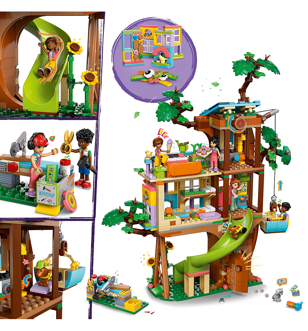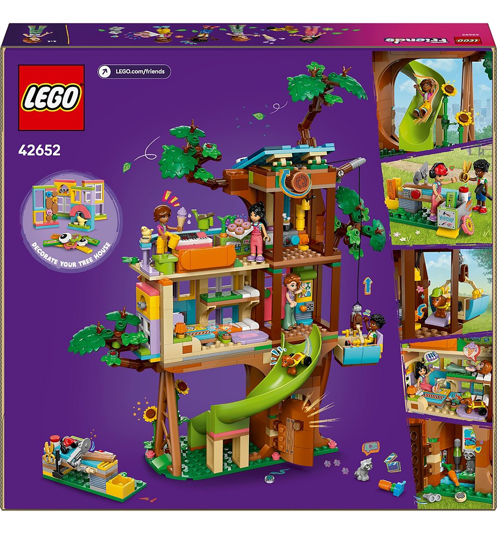 Stimulez l’imagination des enfants avec le set de construction LEGO® Friends La cabane de l'amitié (42652). Ce set détaillé invite les filles et les garçons dès 8 ans à créer leurs propres aventures. Il inclut 4 mini-poupées LEGO Friends, un chienet un raton laveur, ainsi qu’un établi à construire avec des outils. Les personnages Liann, Autumn, Léo et Zac passent de bons moments ensemble dans la cabane qu’ils ont construite. Il y a des espaces pour jouer, cuisiner et dormir, ainsi qu’un potager avec des carottes à ramasser. Il y a également un ascenseur pour Pickle le chien et une cachette pour le raton laveur. Encouragez la créativité des enfants en les invitant à ajouter leur touche personnelle à la décoration de la cabane. Les détails des fenêtres sont interchangeables pour permettre aux jeunes constructeurs de personnaliser davantage leur modèle. Découvrez d’autres jouets de l’univers LEGO Friends favorisant la sociabilité (sets vendus séparément).