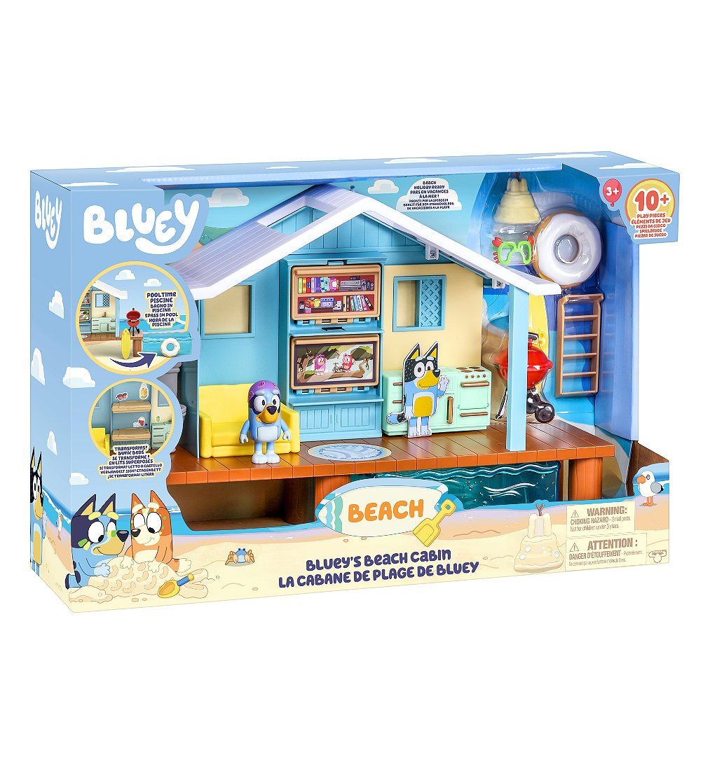 Pars en vacances dans la cabane de plage de Bluey. Inclus : une figurine de Bluey et + de 10 accessoires dont une piscine pour lui apprendre à nager !