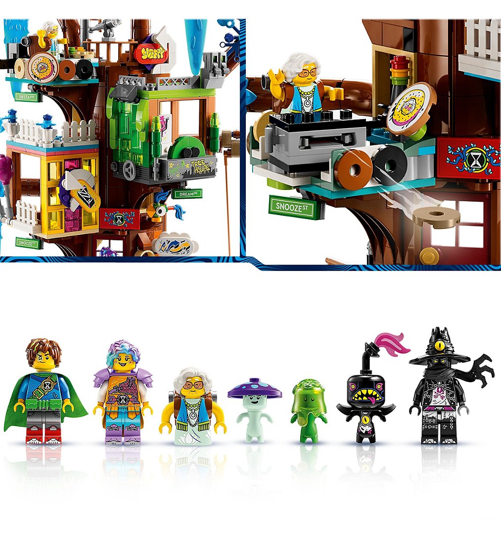 Les fans de la série télévisée LEGO DREAMZzz rejoignent Mateo, Izzie et leurs amis dans leur voyage dans le monde des rêves, en construisant des modèles LEGO de créatures et de véhicules fantastiques pour sauver les rêveurs innocents du Roi des cauchemars et de ses gnome maléfiques. Le jeu de construction LEGO DREAMZzz Fantastical Tree House pour les enfants de plus de 9 ans est un cadeau d'anniversaire plein d'action, ou un cadeau de Noël pour les enfants qui aiment jouer de manière imaginative avec des jouets créatifs.