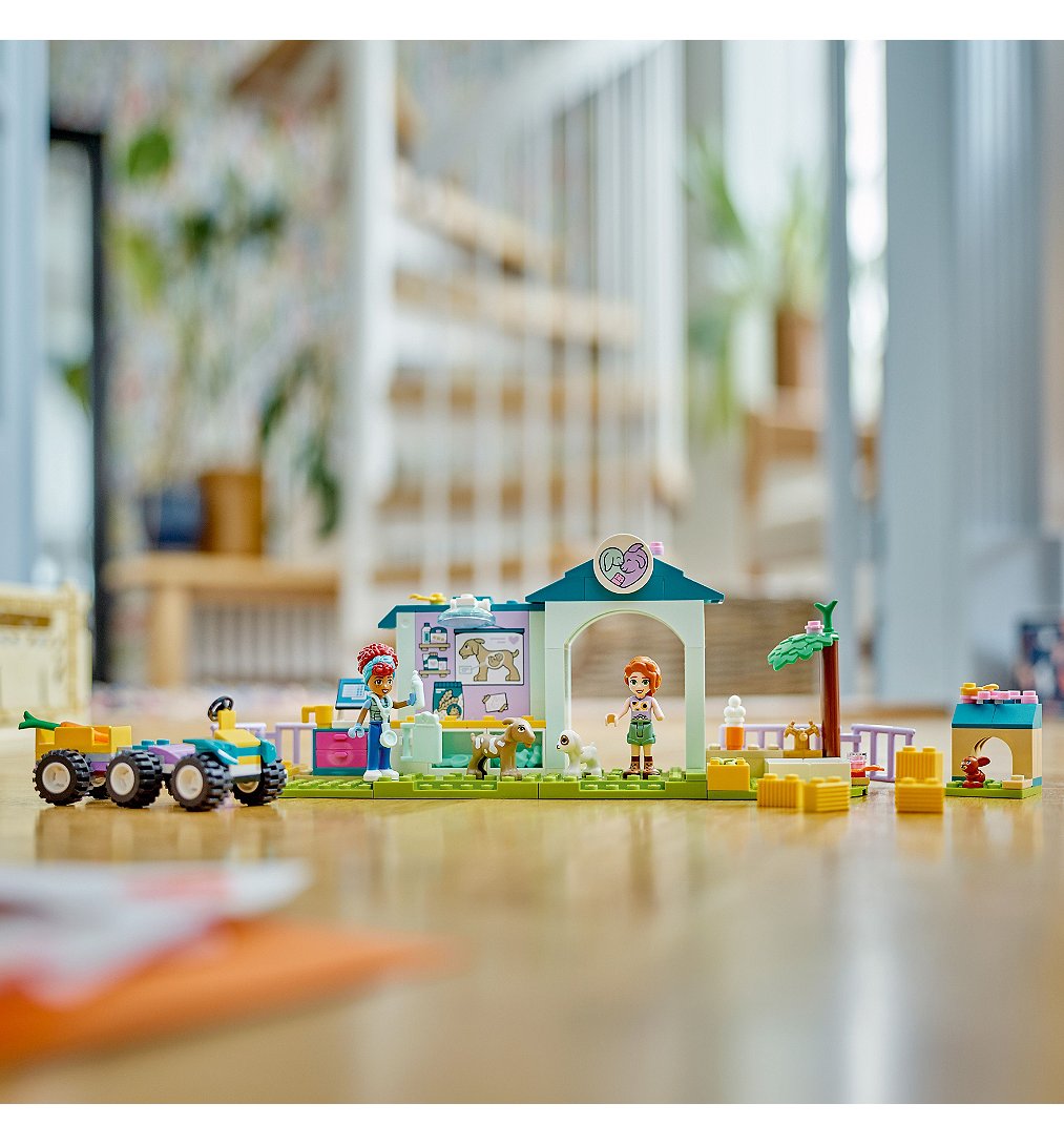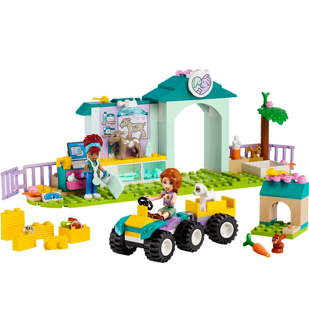 La boîte contient • La clinique vétérinaire des animaux de la ferme LEGO® Friends – Le set inclut 2 mini-poupées, 3 animaux et de nombreux accessoires pour les filles et les garçons dès 4 ans qui aiment jouer à s’occuper d’animaux• Conçu pour les jeunes constructeurs – Les apprentis constructeurs se lancent dans le jeu et aident Autumn et Gabriela à prendre soin de la chèvre qui vient de mettre bas• Transporter les chèvres dans la remorque – Le set inclut une remorque à construire qui invite les enfants à traverser l’arche de l’entrée pour se rendre à la clinique vétérinaire avec la jeune mère et son petit• 2 mini-poupées et 3 animaux – Avec les personnages LEGO® Friends d’Autumn et de Gabriela, une chèvre et un chevreau ainsi qu’un lapin, le jeu créatif peut commencer sans attendre• De nombreux accessoires – Le set comprend des accessoires dont des équipements de vétérinaire, des cerises, une fraise, une abeille, des biscuits, une carotte, une tasse et un flacon de shampoing• Une belle idée de cadeau pour enfants – Ce set LEGO® Friends pour les filles et les garçons est un beau cadeau à offrir pour les fêtes à de jeunes passionnés des animaux de la ferme• Encore plus de jeu et d’action – Découvrez les autres sets LEGO® Friends (vendus séparément) conçus pour inspirer les jeunes constructeurs• Dimensions – Un set de 161 pièces avec une clinique vétérinaire à construire qui mesure plus de 10 cm de haut, 30 cm de large et 7 cm de profondeur