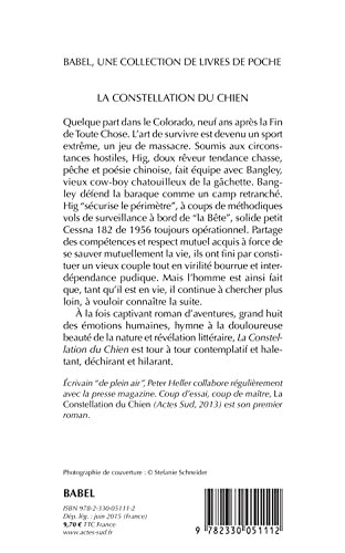 Quelque part dans le Colorado, neuf ans après la Fin de Toute Chose. L'art de survivre est devenu un sport extrême, un jeu de massacre. Soumis aux circonstances hostiles, Hig, doux rêveur tendance chasse, pêche et poésie chinoise, fait équipe avec Bangley, vieux cow-boy chatouilleux de la gâchette. À la fois captivant roman d'aventures, grand huit des émotions humaines, déclaration d'amour à la nature et pure révélation littéraire, "La Constellation du Chien" est une version solaire de "La Route" de Cormac McCarthy. (Et in extremis, réconfortante !)