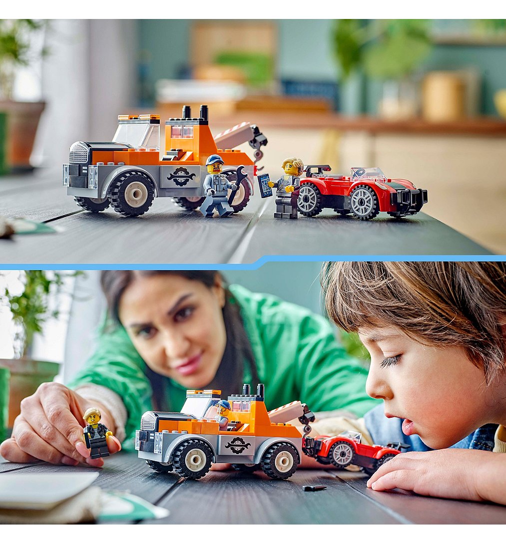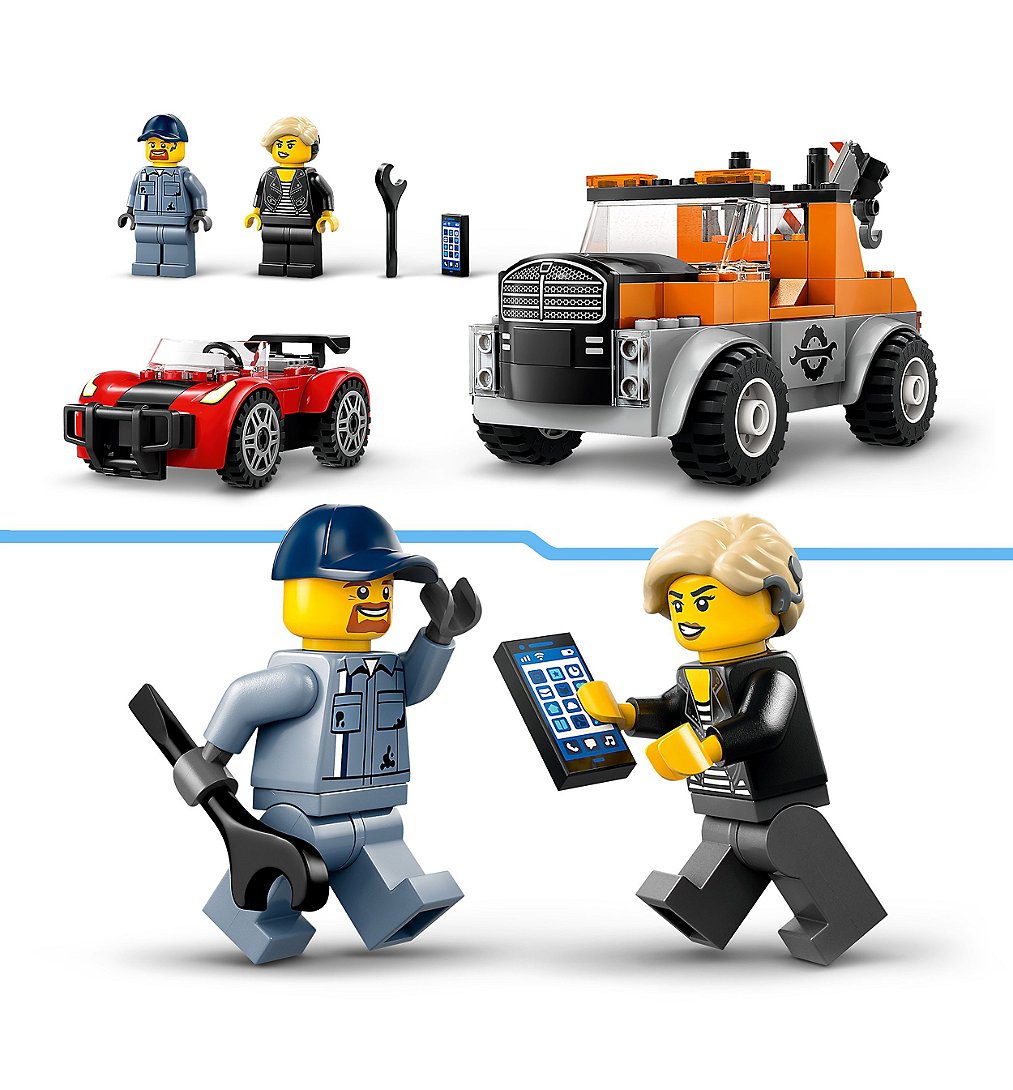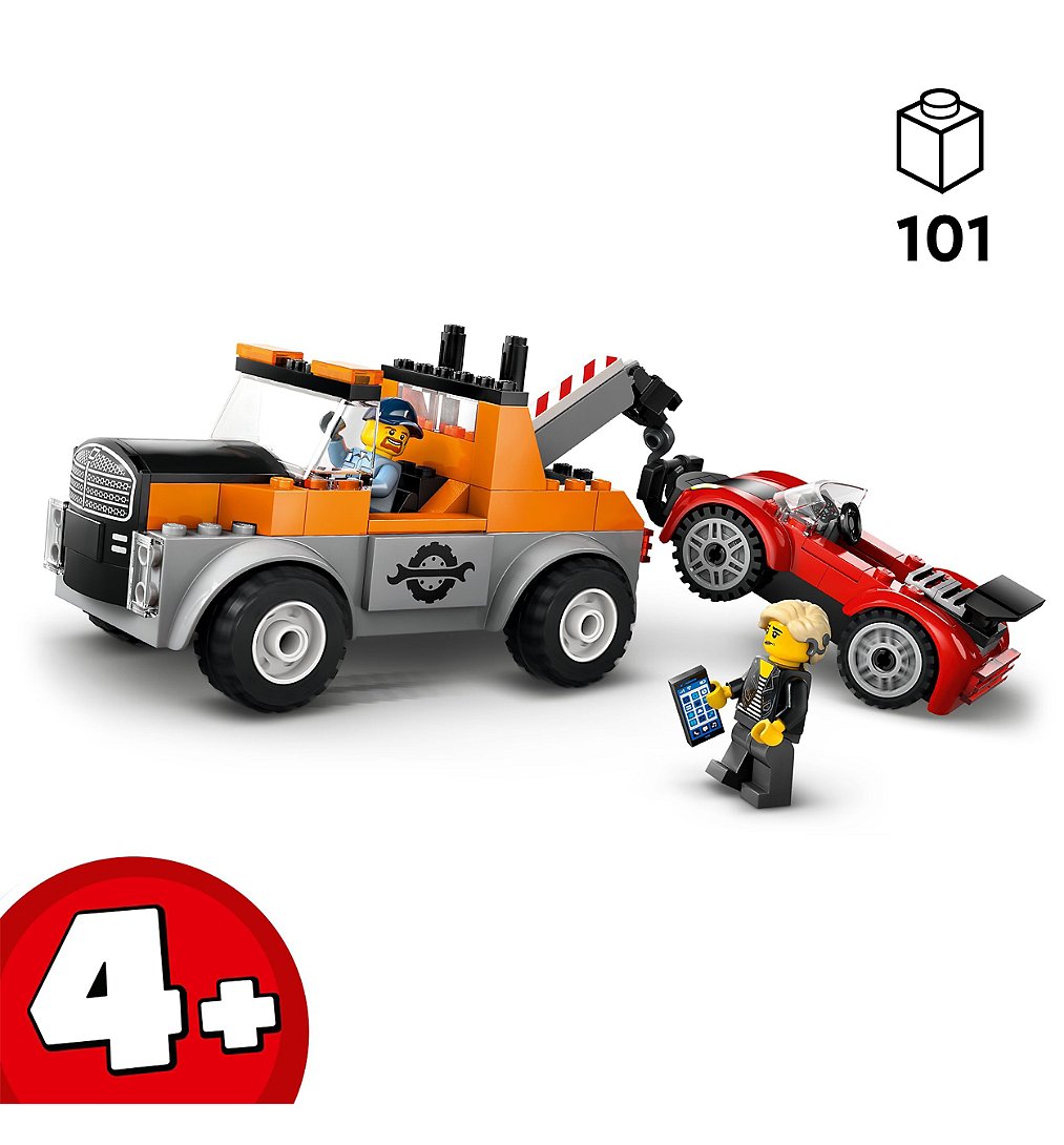 | Plus produit | Un set 4+ amusant avec une dépanneuse LEGO® ainsi que les minifigurines dune conductrice et dun mécanicien, pour des jeux de rôle captivants. |