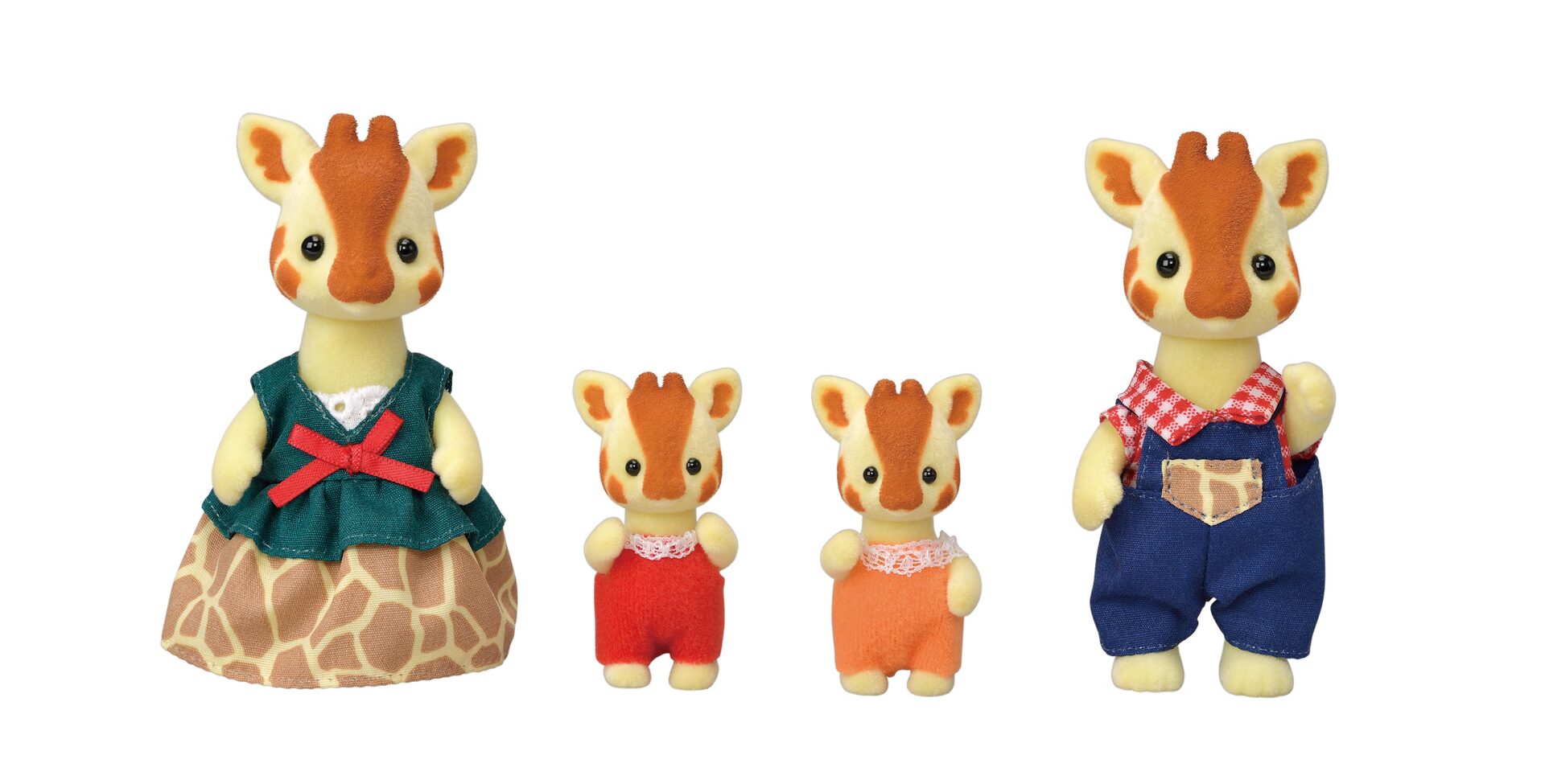 La famille Girafe est composée de 4 personnages : la maman, le papa et les bébés. Ils sont tous articulés et habillés avec soin. Leurs vêtements peuvent être enlevés et remis à loisir.