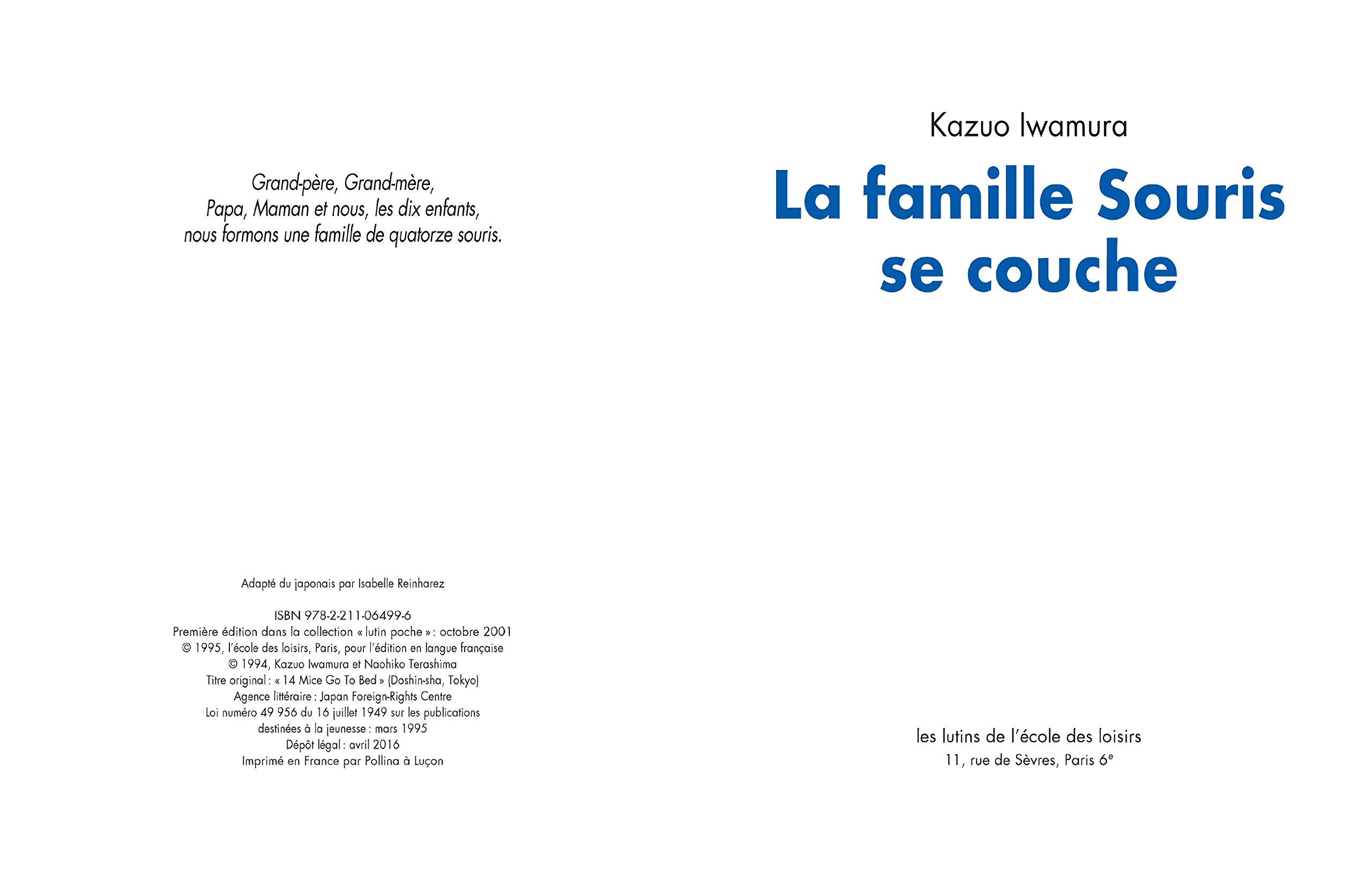 Après le dîner, les quatorze souris se racontent leur journée. Ensuite, les enfants se préparent à se mettre au lit. Après les histoires viennent les berceuses. Par la fenêtre, la lune, silencieuse, veille sur les souris. Retrouvez les aventures de la Famille Souris dans les 10 autres albums parus à l'école des loisirs !