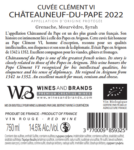 | Libellé | La Grande Collection des Papes Cuvée Clément VI, 2022 - Châteauneuf-du-Pape AOP - Rouge - 75 cl |
