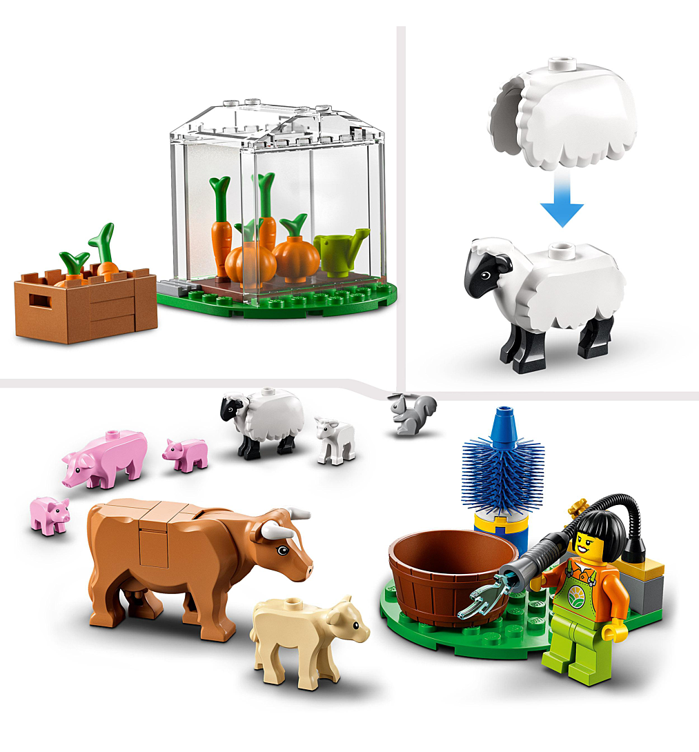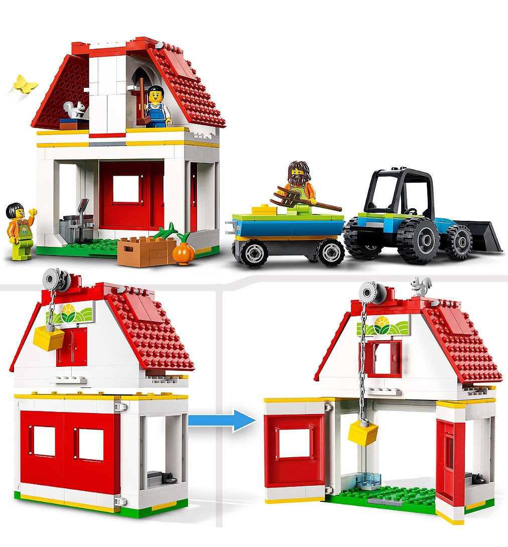 | Plus produit | Les enfants de 4 ans et plus passionnés par les animaux de la ferme vont adorer ce set incluant une grange, une serre, un tracteur, de nombreuses fonctions amusantes, des animaux adorables et 4 minifigurines. |