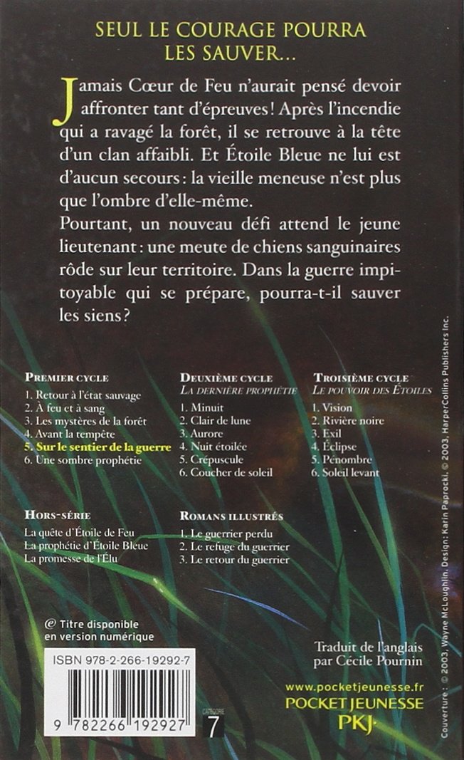 Jamais Cœur de Feu n'aurait pensé devoir affronter tant d'épreuves ! Après l'incendie qui a ravagé la forêt, il se retrouve à la tête d'un clan affaibli. Et Étoile Bleue ne lui est d'aucun secours : la vieille meneuse n'est plus que l'ombre d'elle-même. Pourtant, un nouveau défi attend le jeune lieutenant : une meute de chiens sanguinaires rôde sur leur territoire. Dans la guerre impitoyable qui se prépare, pourra-t-il sauver les siens ?