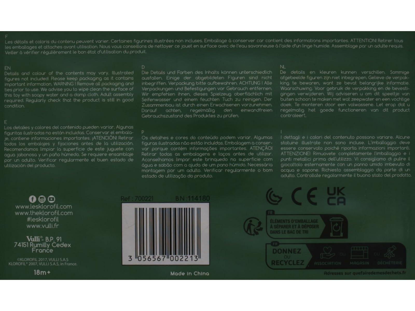 | Avertissements | ATTENTION! Retirer tous les éléments d’emballage et attaches avant de donner le jouet à l’enfant. Les détails et coloris du contenu peuvent varier. Conserver l’emballage car il contient des informations importantes. Nettoyer uniquement en surface, avec un chiffon humide. Montage par un adulte requis. Vérifier régulièrement l’état d’usure du produit et la présence de ruptures éventuelles. En cas de dommage, ne pas utiliser le jouet et le tenir hors de portée de l’enfant. |