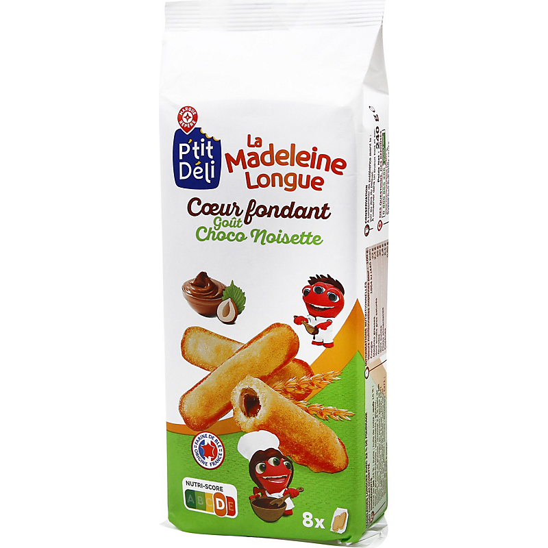 La madeleine longue cœur fondant goût choco noisette - 240 g - P'TIT DELI