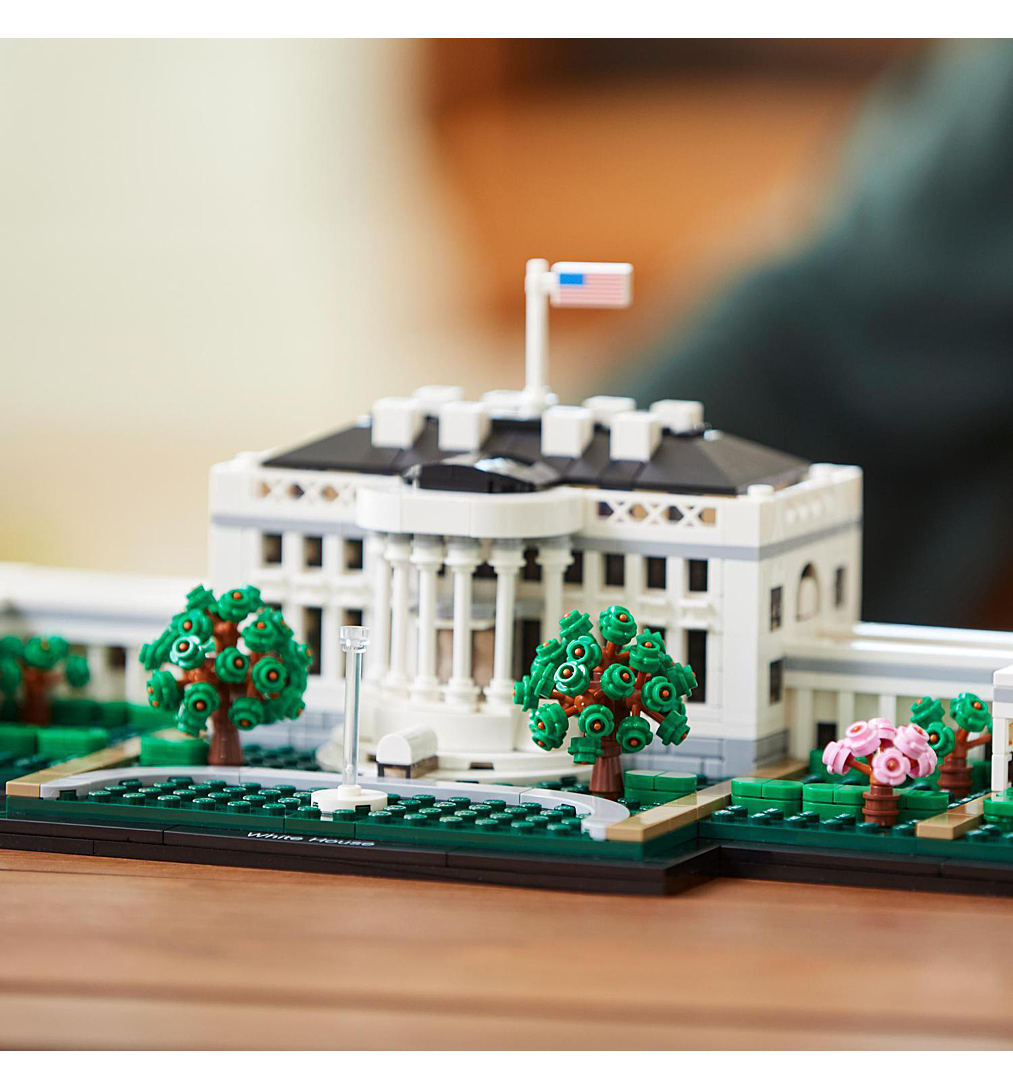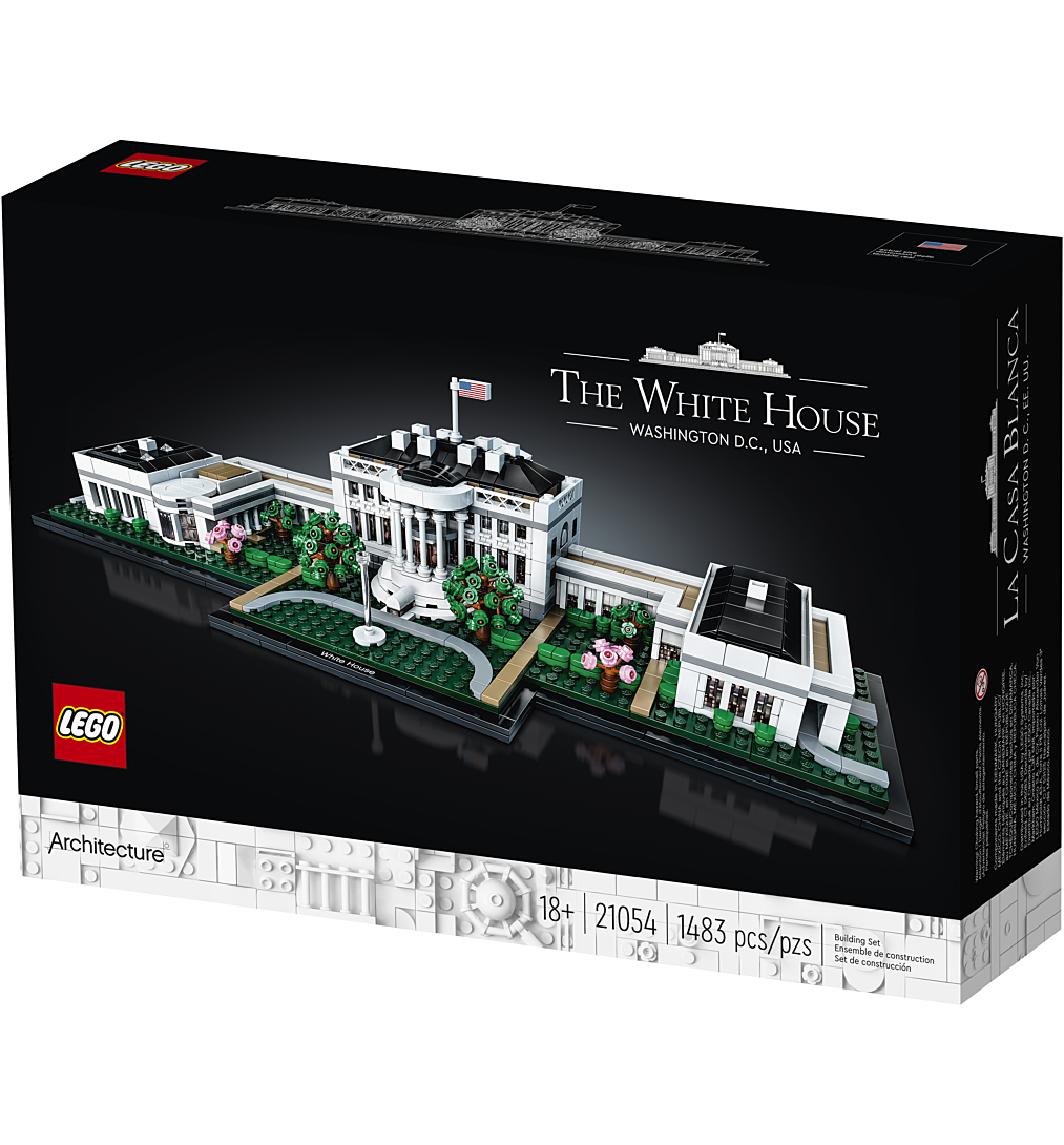 La boîte contient • Le modèle LEGO® Architecture La Maison Blanche (21054) à exposer reproduit magnifiquement le style néoclassique et la splendeur de ce bâtiment connu dans le monde entier pour être la résidence du Président des États-Unis depuis 1800.• Ce set de construction LEGO® destiné aux adultes comprend des détails tels que la résidence exécutive, l’aile Ouest, l’aile Est et les colonnades de la Maison Blanche, mais également la Roseraie et le jardin Jacqueline Kennedy.• Le modèle se sépare facilement en 3 parties pour observer de plus près les détails architecturaux. La brique LEGO® portant l’inscription « White House » (la Maison Blanche en anglais) ajoute une touche finale à cette pièce d’exposition qui ne manquera pas de faire parler d’elle.• Ce set de construction créatif est idéal pour tous ceux qui ont visité ou rêvent de visiter le bâtiment du 1600 Pennsylvania Avenue, Washington DC, ainsi que pour les passionnés de voyage, d’architecture, d’histoire et de design.• Mesurant 11 cm de haut, 47 cm de large et 20 cm de profondeur, ce modèle LEGO® Architecture est une superbe pièce à exposer à la maison ou au bureau. Il constitue également un magnifique cadeau à offrir à ses amis créatifs.• Pas besoin de piles – les briques LEGO® sont à l’honneur dans ce modèle sophistiqué de la Maison Blanche ; les constructeurs passionnés peuvent ainsi se plonger dans une activité immersive et se sentir détendus et pleins d’énergie une fois le modèle terminé.• Inclut des instructions de montage, pour que même les constructeurs LEGO® débutants puissent créer en toute confiance, ainsi qu’un superbe livret illustré relatant l’histoire de la Maison Blanche (en anglais uniquement, d’autres langues peuvent être téléchargées sur LEGO.com/architecture).• Ce set de construction pour adultes fait partie d’une collection de modèles LEGO® passionnants, conçus pour les constructeurs exigeants à la recherche de nouveaux projets créatifs.• Les briques de construction LEGO® sont conformes aux normes industrielles les plus élevées ; elles sont parfaitement compatibles entre elles et peuvent être facilement assemblées et séparées, et cela depuis 1958.• Les briques et les pièces LEGO® font l’objet de tests rigoureux pour garantir que chaque set de construction répond aux normes de sécurité et de qualité les plus élevées, et pour que ce modèle miniature de la Maison Blanche soit aussi robuste qu’esthétique.