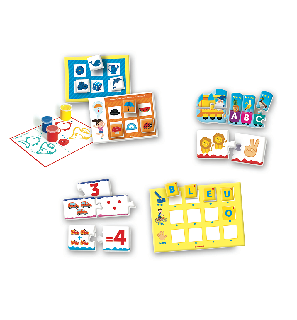 • Un coffret de 12 jeux éducatifs proposant de nombreuses activités préscolaires abordées à l'école maternelle. • Des activités conçues pour stimuler les compétences manuelles, logiques/mathématiques et linguistiques, à travers des jeux d'assemblage, des jeux de loto, des fiches d'activités… • Pour rendre l'apprentissage encore plus amusant, le coffret comprend également des peintures lavables pour peindre au doigt, ainsi que des feutres pour encourager les enfants à dessiner.