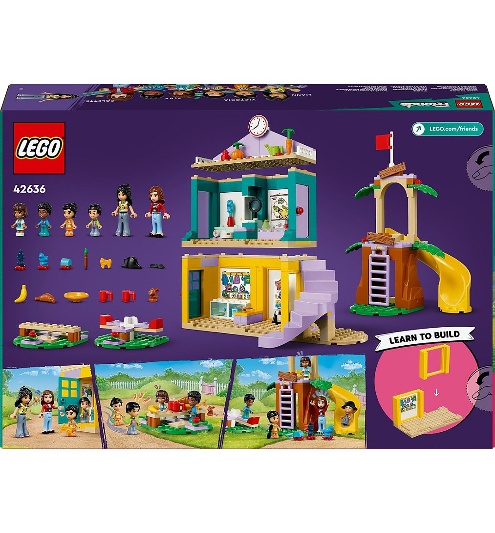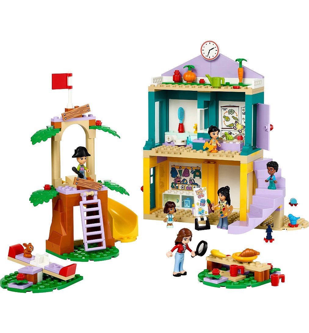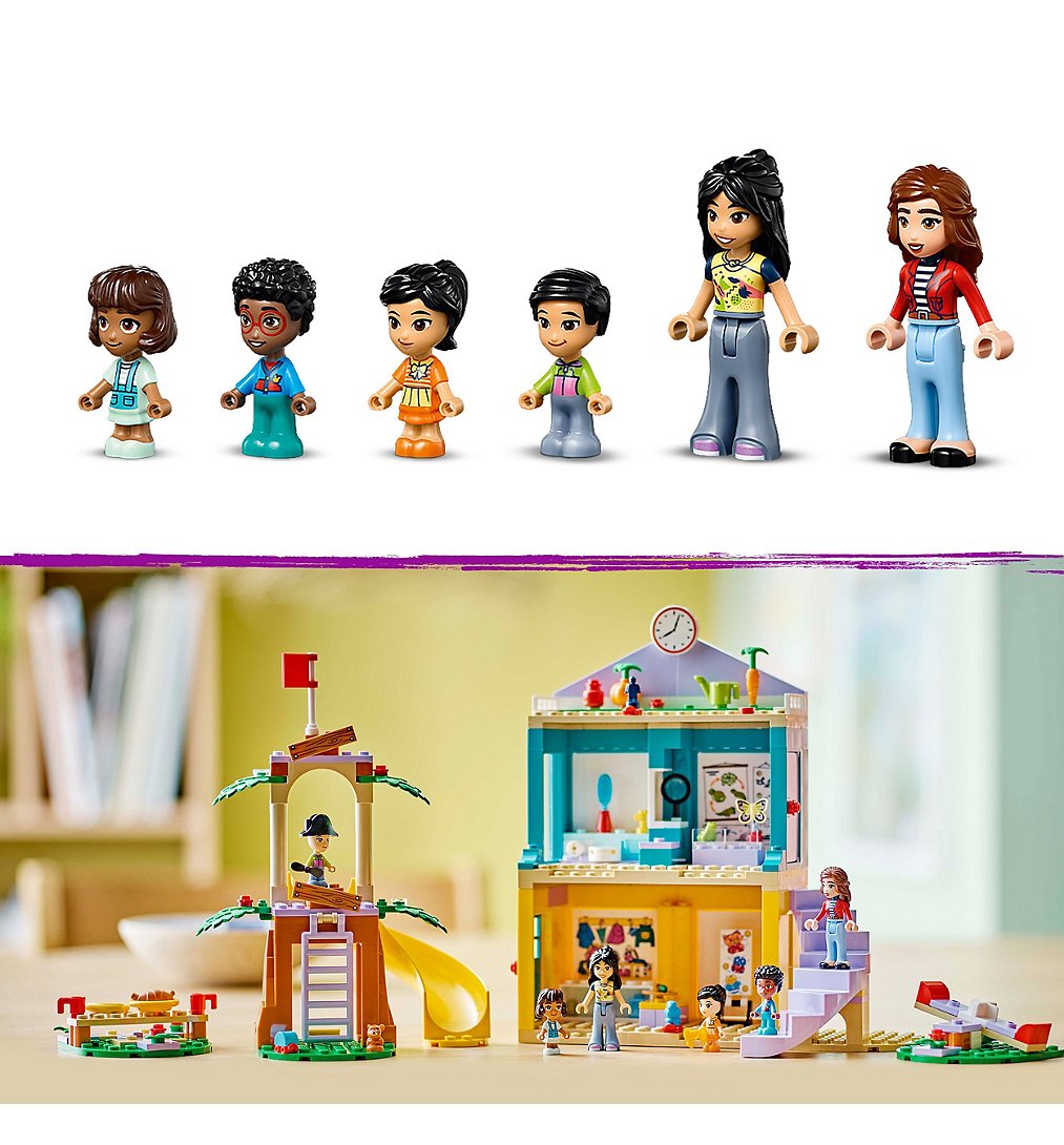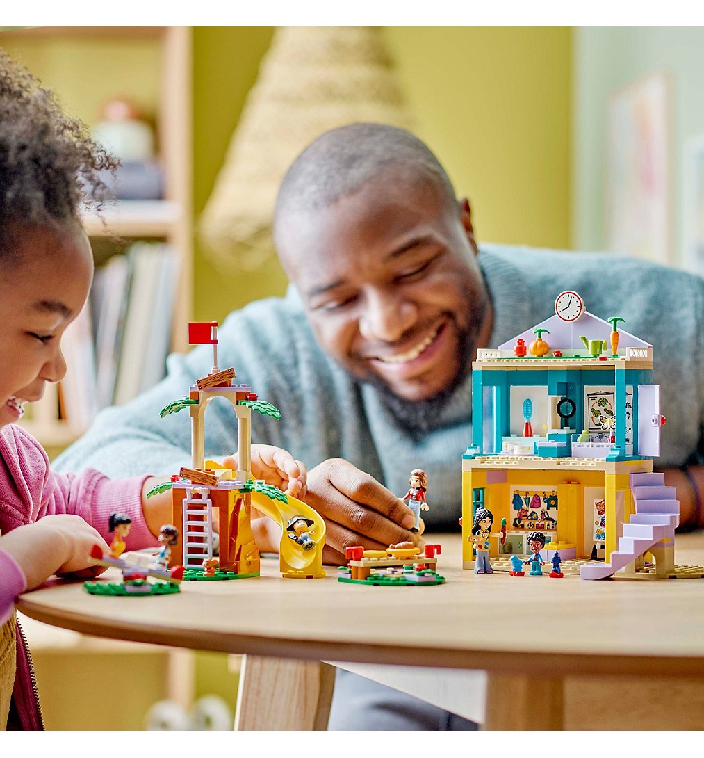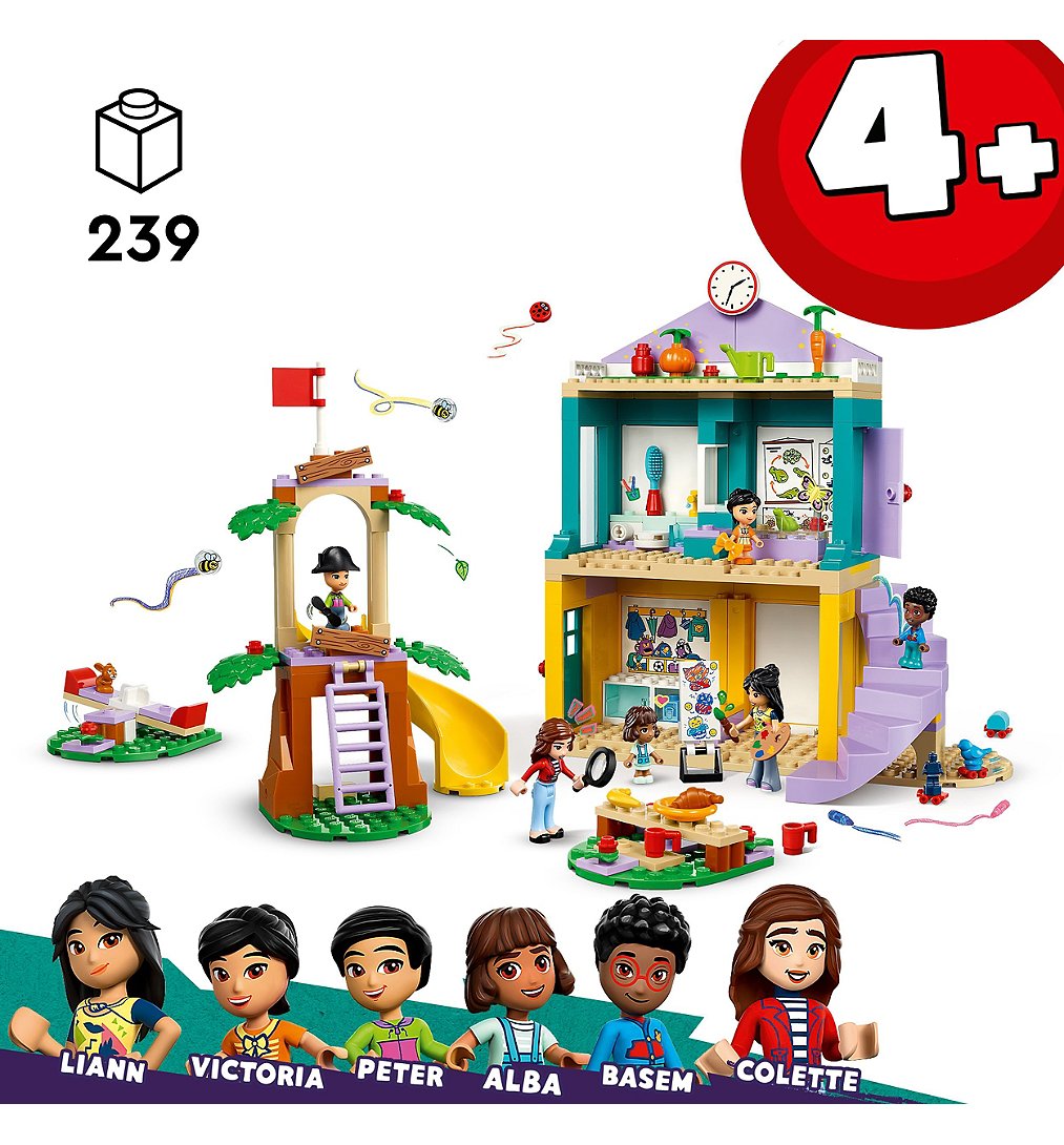 Découvrez une salle de classe inspirante pour les filles et les garçons dès 4 ans. La maternelle de Heartlake City LEGO Friends (42636) regorge d’accessoires qui encouragent les enfants à recréer une journée à l’école maternelle avec 2 mini-poupées, 4 micro-poupées et un lapin. Ce jouet LEGO favorisant la sociabilité est empli de détails d’une vraie école maternelle. Découvrez la nature et le cycle de la vie, explorez différentes émotions, faites appel à votre créativité dans l’atelier peinture ou amusez-vous sur la balançoire et le toboggan. Les enfants prennent leur collation à la table de pique-nique, puis se rendent au potager pour arroser les légumes. Les sets LEGO Friends 4+ proposent une construction rapide et amusante. Ils s’accompagnent d’une brique de démarrage – une plaque robuste sur laquelle les enfants créent la scène. Ce set est un beau cadeau d’anniversaire. Accompagné de l’appli LEGO Builder, il propose aux enfants une expérience de construction simple et intuitive.