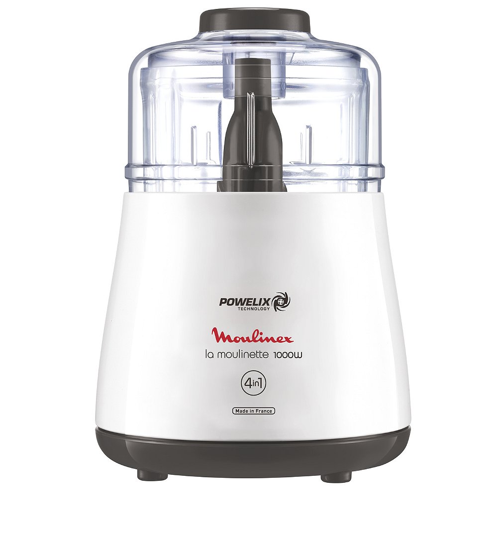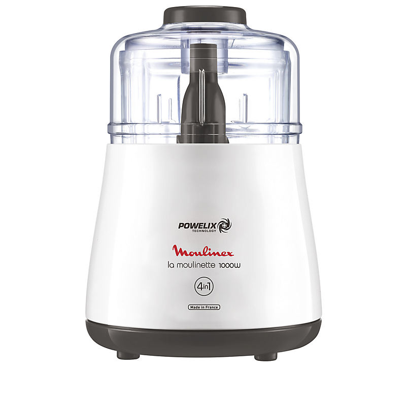 Coupez tous vos ingrédients avec le hachoir électrique La Moulinette ! La Moulinette combine une puissance de 1000 W avec la technologie de lames exclusive Powelix pour une coupe efficace de tous types d'aliments en quelques secondes (oignons, ail, fines herbes, viande, noix, etc...). Le hachoir dispose d'un grand bol transparent afin de contrôler visuellement le résultat de vos préparations. Enfin, son bol à grande capacité de 500 ml est idéal pour préparer de grandes portions.