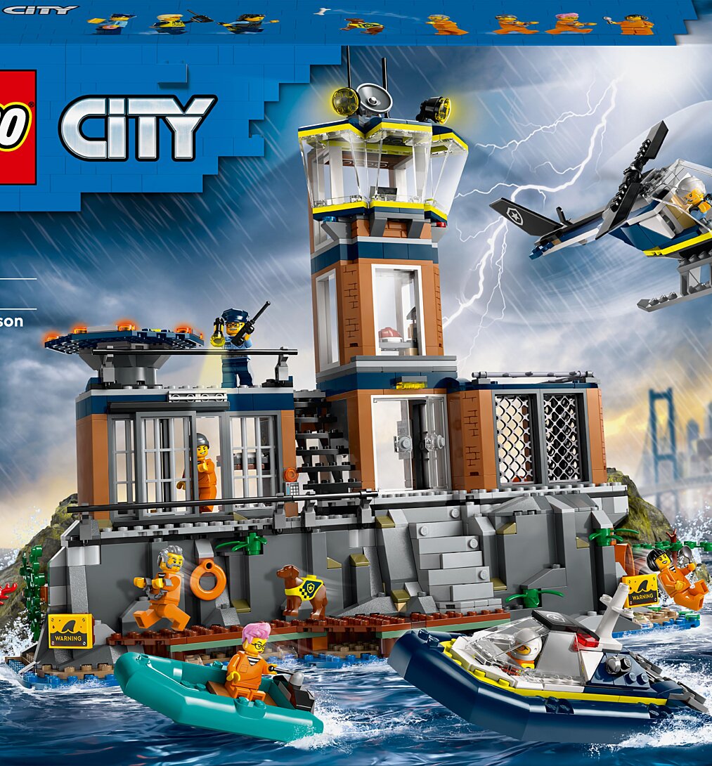 La Prison de la Police en Haute Mer LEGO City (60419) abrite certains des voleurs les plus infâmes de la ville, mais ils ont d'autres projets. Vivez des aventures pleines d'action avec cet ensemble intrigant comprenant une prison à flanc de falaise, avec un hélicoptère, un bateau de police, un hors-bord et des minifigurines de 3 policiers et 4 prisonniers, plus des figurines d'un chien policier et d'un requin. L'intérieur regorge de détails, notamment une salle de contrôle, une salle de repos, un hall d'entrée, une cour avec une trappe d'évacuation secrète, une niche pour chien, une cellule avec des lits superposés et un tunnel d'évacuation menant à une mine abandonnée, ainsi qu'une buanderie pour les prisonniers avec des outils d'évasion. La prison-jouet comprend également une piste d'atterrissage et un mur de falaise avec un rocher détaché pour s'échapper. Offrez à votre enfant une aventure passionnante avec l'application LEGO Builder. Grâce à elle, ils peuvent suivre leurs progrès, zoomer et faire pivoter les décors en 3D pour voir les modèles de jouets LEGO City sous tous les angles pendant qu'ils construisent.
