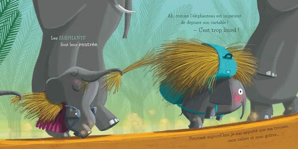 Les animaux font leur rentrée ! Devant la grille, les escargots jouent les timides dans leurs coquilles. En classe, les cochons patouillent et jouent à tache-tache.