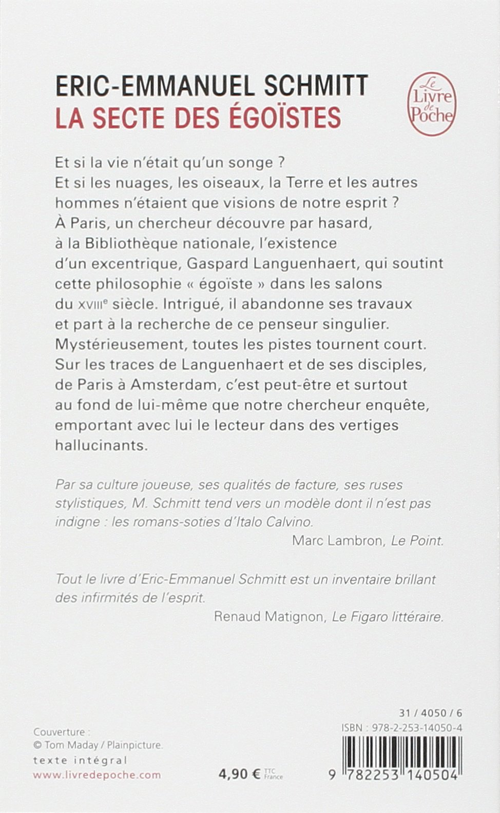 À Paris, un chercheur découvre par hasard, à la Bibliothèque nationale, l'existence d'un excentrique, Gaspard Languenhaert, qui soutint cette philosophie « égoïste » dans les salons du XVIIIe siècle.