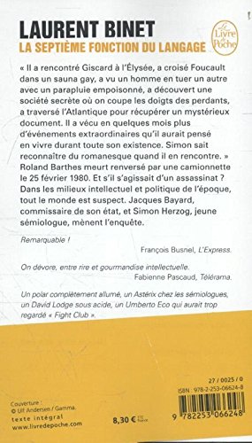 « Il a rencontré Giscard à l'Élysée, a croisé Foucault dans un sauna gay, a vu un homme en tuer un autre avec un parapluie empoisonné, a découvert une société secrète où on coupe les doigts des perdants, a traversé l'Atlantique pour récupérer un mystérieux document. Il a vécu en quelques mois plus d'événements extraordinaires qu'il aurait pensé en vivre durant toute son existence. Simon sait reconnaître du romanesque quand il en rencontre. » Roland Barthes meurt renversé par une camionnette le 25 février 1980. Et s'il s'agissait d'un assassinat ? Dans les milieux intellectuel et politique de l'époque, tout le monde est suspect. Jacques Bayard, commissaire de son état, et Simon Herzog, jeune sémiologue, mènent l'enquête.