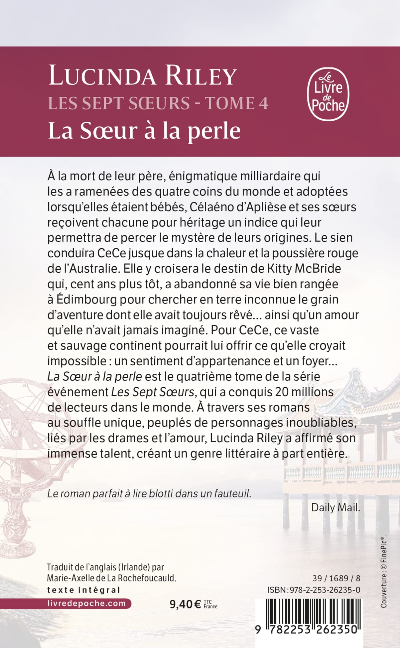 La Soeur à la perle est le quatrième tome de la série événement Les Sept Soeurs, qui a conquis 20 millions de lecteurs dans le monde. À travers ses romans au souffle unique, peuplés de personnages inoubliables, liés par les drames et l'amour, Lucinda Riley a affirmé son immense talent, créant un genre littéraire à part entière.