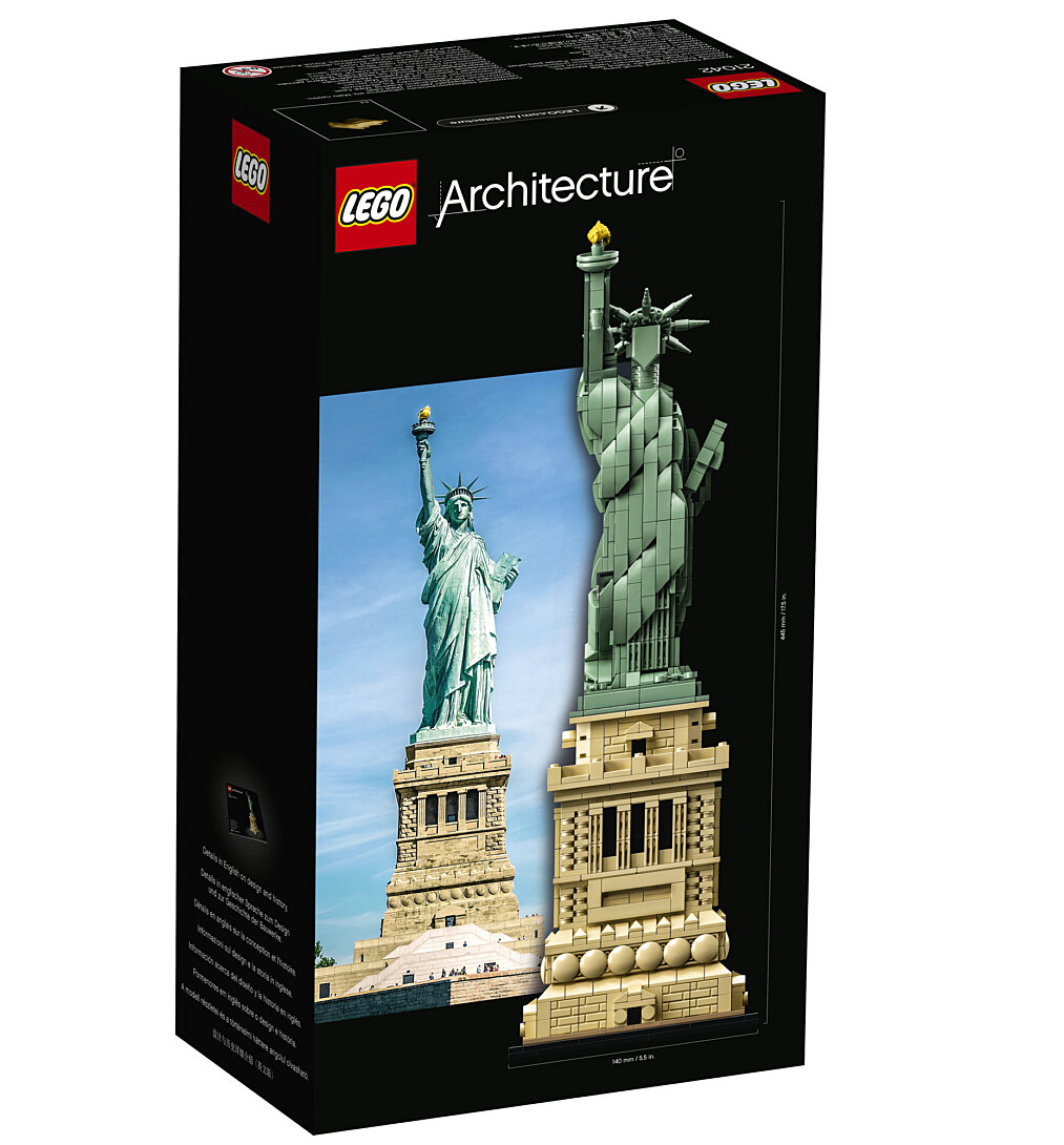 Ajoutez à votre collection une pièce maîtresse emblématique à exposer à la maison ou au bureau avec cette réplique de la Statue de la Liberté issue de la gamme LEGO® Architecture, l’alliance parfaite entre sculpture et architecture.Mettez à l'honneur un monument qui symbolise l'équilibre parfait entre architecture et sculpture grâce à cet ensemble LEGO Architecture 21042 La Statue de la Liberté. Symbole emblématique de la liberté en Amérique, elle surplombe Liberty Island du haut de ses 93 mètres dans le port de New York City et accueille les navigateurs venus des quatre coins du monde. Cette maquette à construire LEGO impressionnante reflète parfaitement le mélange entre sculpture et architecture qui caractérise le célèbre monument, avec son piédestal très détaillé, orné de motifs représentant des briques et de balcons à colonnades. La superbe Statue de la Liberté est dotée de sa robe ample, de menottes brisées, d'une couronne à 7 branches, de sa célèbre tablette et de sa torche dorée brandie vers le ciel. Caractérisé par une magnifique finition de teintes authentiques beige et vert-de-gris et rehaussé d'un écriteau décoratif, ce modèle à construire promet à tous les passionnés d'architecture, de voyage, d'histoire et de conception une expérience de construction particulièrement gratifiante. Une fois terminée, cette œuvre emblématique remarquable trouvera parfaitement sa place dans la décoration de votre maison ou du bureau.Contient 1685 piècesRéplique LEGO Architecture d’un célèbre monument, la Statue de la Liberté Comprend un piédestal orné de motifs complexes représentant des briques ainsi que de balcons à colonnades, ainsi qu’une Statue de la Liberté dotée de sa robe ample, d’une couronne à 7 branches, de sa célèbre tablette et de sa torche doréeCet ensemble à construire comprend plus de 1 685 pièces LEGONombre de pièces : 1685 piècesÂge : 16+ • Réplique LEGO Architecture d’un célèbre monument, la Statue de la Liberté • Comprend un piédestal orné de motifs complexes représentant des briques ainsi que de balcons à colonnades, ainsi qu’une Statue de la Liberté dotée de sa robe ample, d’une couronne à 7 branches, de sa célèbre tablette et de sa torche dorée • Livret inclus avec des détails sur la conception, l'architecture et l'histoire du bâtiment (en anglais, français et chinois uniquement Autres langues disponibles en téléchargement sur LEGO com/architecture) • La ligne de produits LEGO Architecture célèbre le monde de l'architecture par le biais de la brique LEGO, pour tous les adultes qui s'intéressent à la création, à l'histoire et à l'architecture • Cet ensemble à construire comprend plus de 1 685 pièces LEGO • Une expérience de construction agréablement stimulante et gratifiante avec cet ensemble LEGO Architecture • Mesure plus de 44 cm de haut, 14 cm de large et 14 cm de profondeur