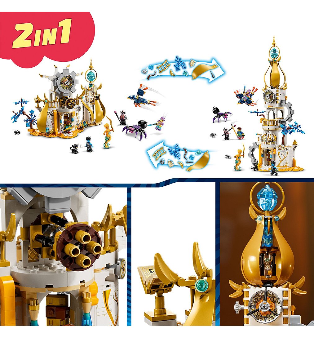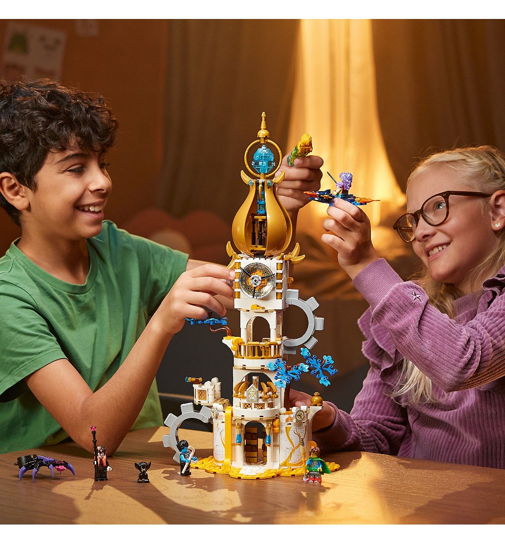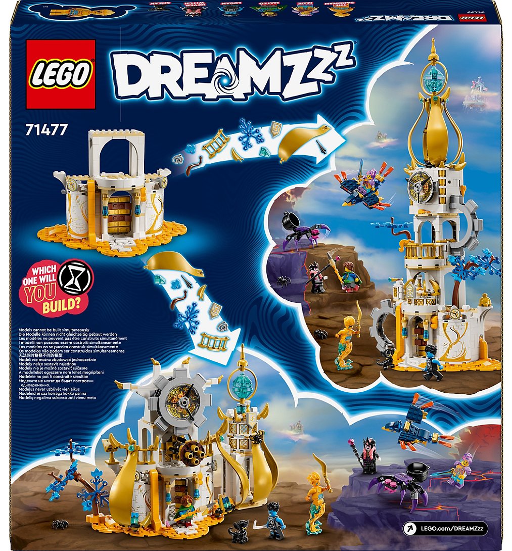 Laissez les enfants âgés de 9 ans et plus découvrir La Tour du Marchand de Sable avec ce jouet de château LEGO DREAMZzz (71477). Basé sur le formidable spectacle télévisé, cet ensemble de construction permet aux enfants d'aider les héros à défendre la maison magique du Marchand de Sable contre la maléfique Sorcière des Cauchemars et son sbire Sneak ! Ce jouet pour enfants les encourage à donner libre cours à leur imagination en leur offrant 2 options de construction. Ils peuvent choisir de le transformer en une forteresse imposante ou en une élégante tour jouet. En mode forteresse, le modèle possède un canon à sablier, et en mode tour, le modèle présente un sommet rotatif. Les deux options de construction incluent des accessoires passionnants tels qu'un râtelier d'armes, une station de potions et un livre magique, ainsi que des figurines d'animaux fantastiques, dont un oiseau jouet et une araignée jouet posable. Izzie, Mateo, Logan, le Marchand de Sable et la redoutable Sorcière des Cauchemars, ainsi qu'une figurine de Sneak, donnent vie à l'ensemble du château, permettant ainsi aux enfants de construire leur propre tour de rêve.