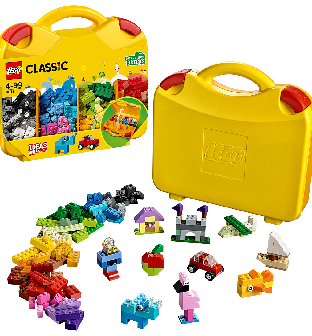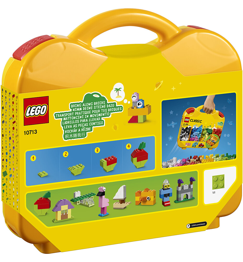 Pour s'amuser à trier et à transporter ses pièces LEGO® avec cette valisette de construction LEGO Classic très pratique. Elle comprend une sélection de briques colorées, des yeux, des roues et des formes.Les jeunes constructeurs dès 4 ans peuvent créer, jouer puis ranger leurs briques LEGO avec La valisette de construction LEGO Classic 10713 pratique et bien pensée. Elle comprend une sélection de briques de construction LEGO aux couleurs vives, y compris des yeux, des roues et des formes pour construire tous types de maisons, de véhicules, de créatures et autres créations. À l’intérieur de la boîte de rangement LEGO, il y a plusieurs compartiments qu'il est possible d'organiser à sa façon pour stocker les briques LEGO. Cette boîte de briques LEGO Classic inclut également des instructions de montage simples et adaptées aux enfants qui les aideront à découvrir et à développer leurs talents de construction créative.La valisette mesure plus de 26 cm de haut, 28 cm de large et 6 cm de profondeur.Contient 213 pièces. Pour les filles et les garçons de 4 ans et plus.Inclut une valisette jaune très solide, des compartiments pratiques et une gamme de pièces colorées : des briques de construction, des formes, des yeux et des roues LEGO Les enfants peuvent ranger leurs briques de construction LEGO et les emmener lorsqu’ils se déplacent pour jouer partout !Aller sur LEGO.com/classic pour obtenir des instructions de montage supplémentaires, regarder des vidéos amusantes et trouver des idées et de l’inspiration. Demander l’autorisation de tes parents avant de te connecter.Nombre de pièces : 213 piècesÂge : 4-99