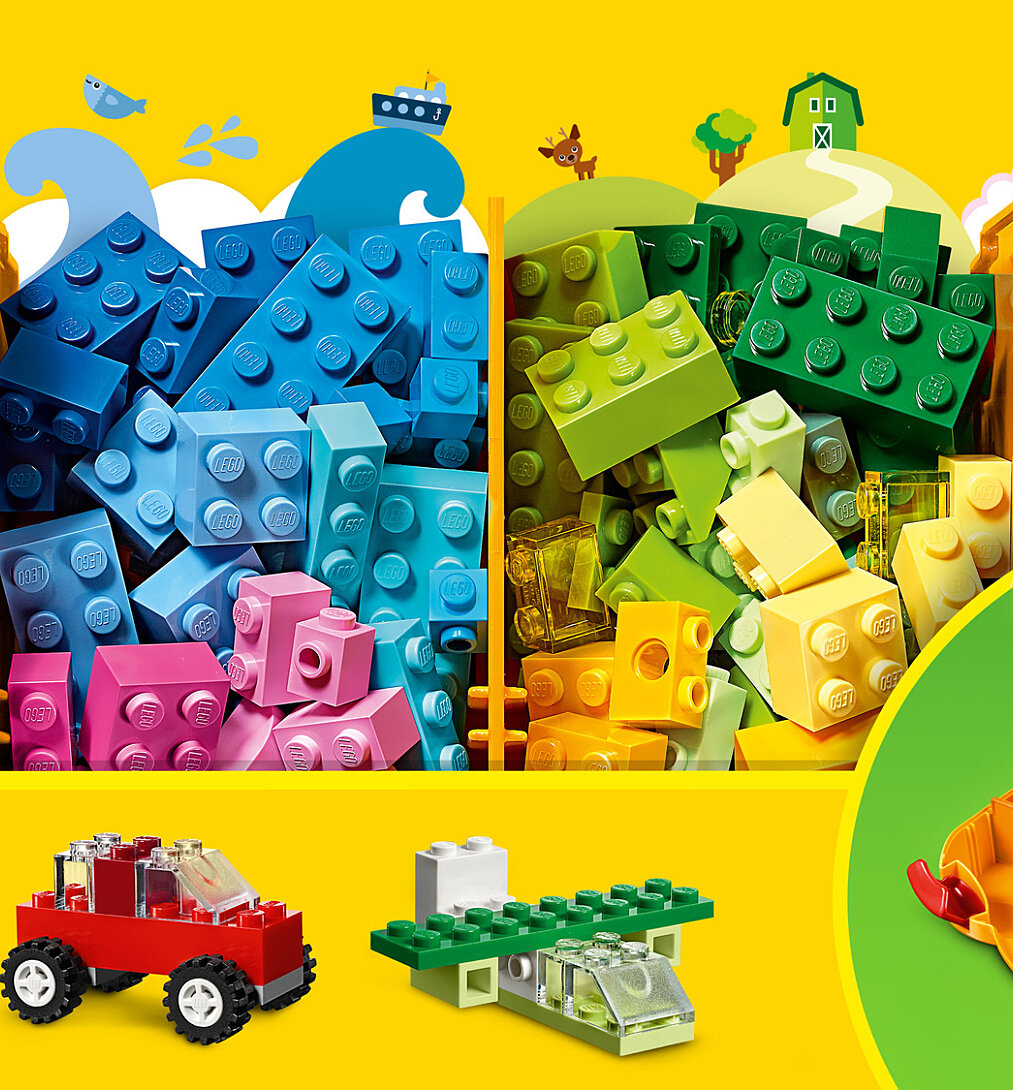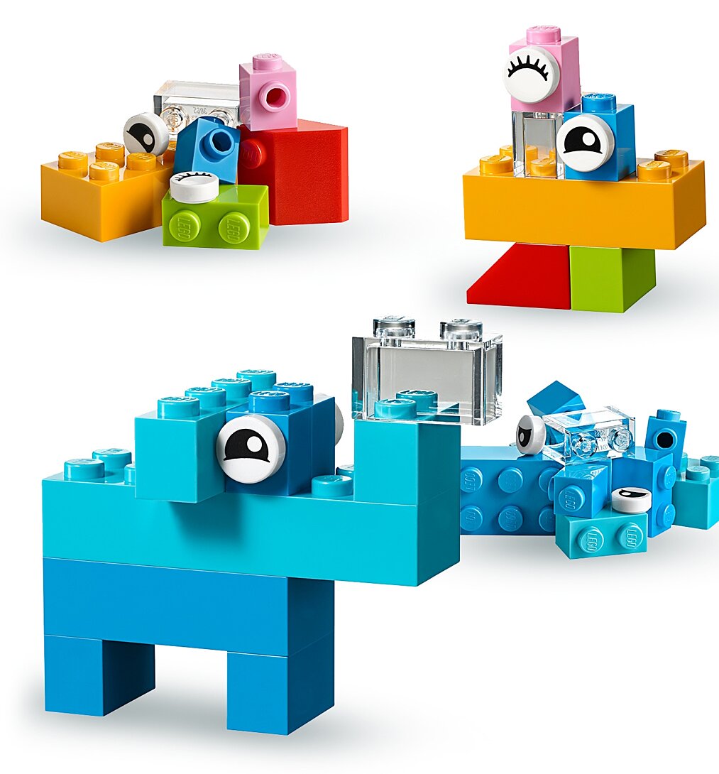 | Plus produit | Pour s\'amuser à trier et à transporter ses pièces LEGO® avec cette valisette de construction LEGO Classic très pratique. Elle comprend une sélection de briques colorées, des yeux, des roues et des formes. |