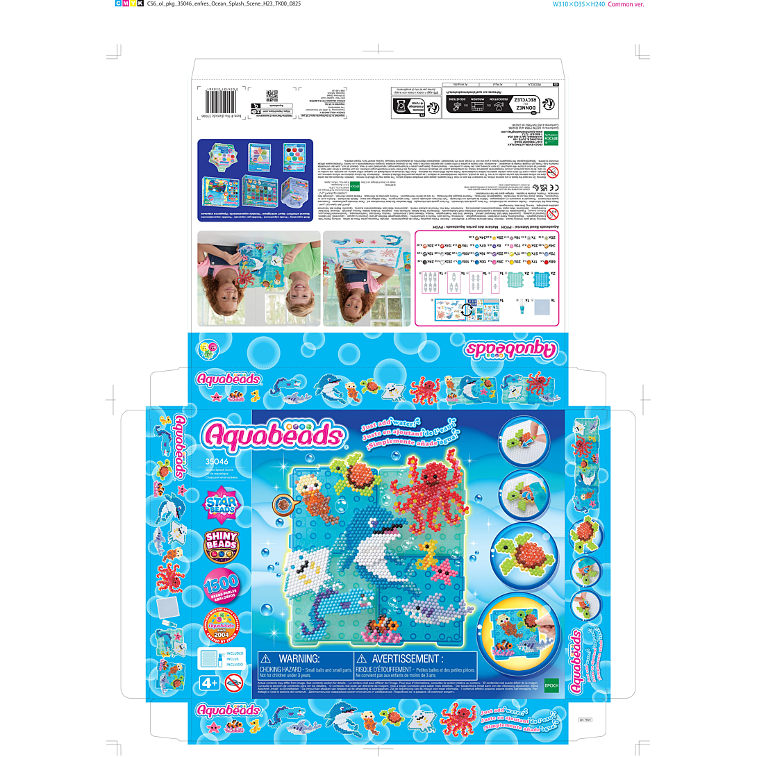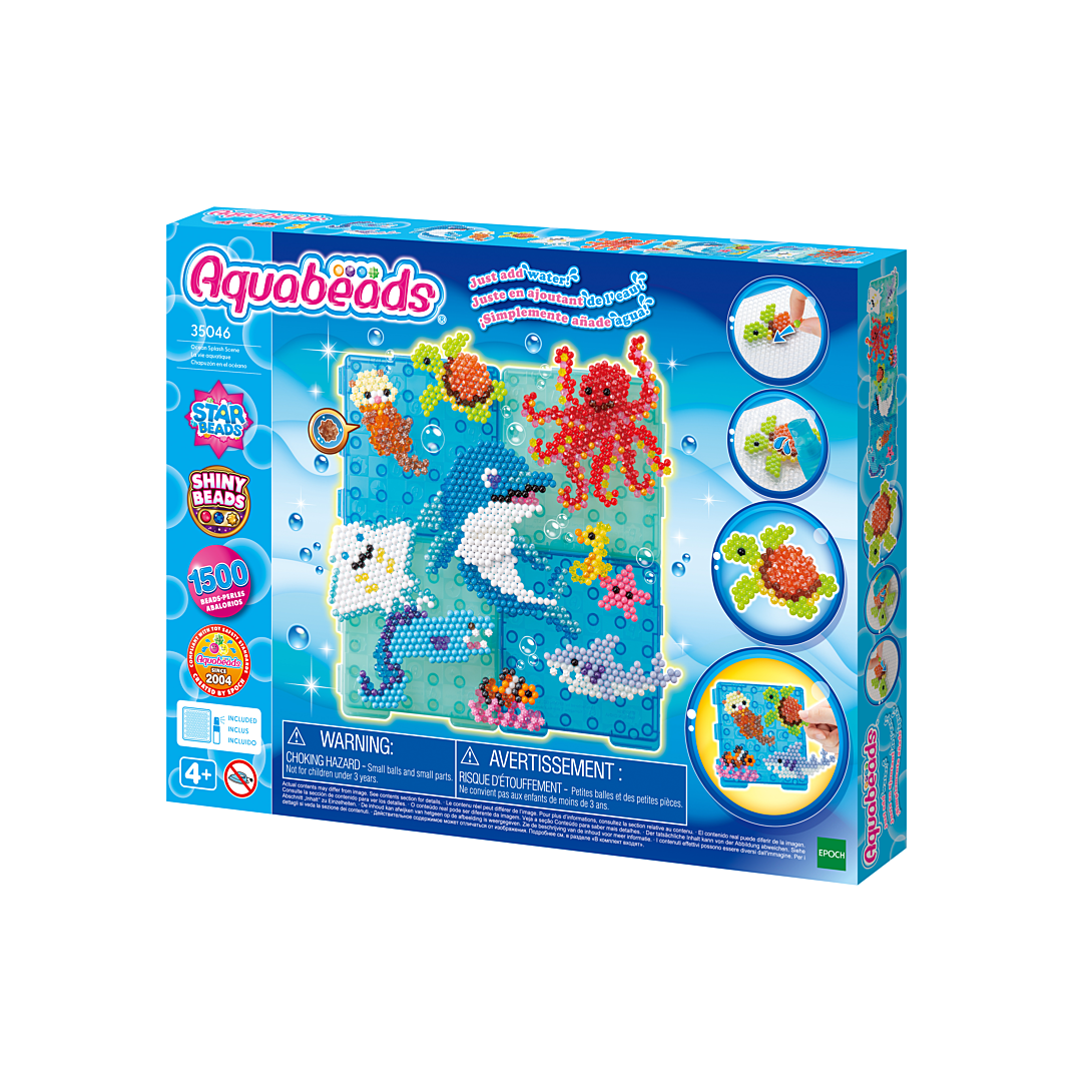 Avec ce coffret, la magie du monde marin va prendre vie ! Ce coffret inclus 4 bases de créations, qui te permettrons d'exposer toutes tes créations une fois terminées. Tu obtiendra alors un joli tableau sous-marin pour décorer ta chambre ! Le principe est simple : assemble les perles, vaporise de l'eau, laisse sécher et c'est prêt ! Il suffit de clipser tes créations sur la base pour la décorer ! Ce coffret contient des perles de différentes formes, la base de création pour exposer tes créations et décorer ta chambre, ainsi que l’essentiel pour des heures de créativité avec Aquabeads ! Dès 4 ans.