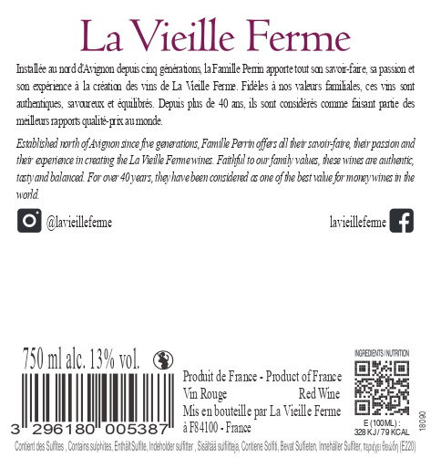 | Libellé | La Vieille Ferme, 2024 - Vin de France - Rouge - 75 cl |