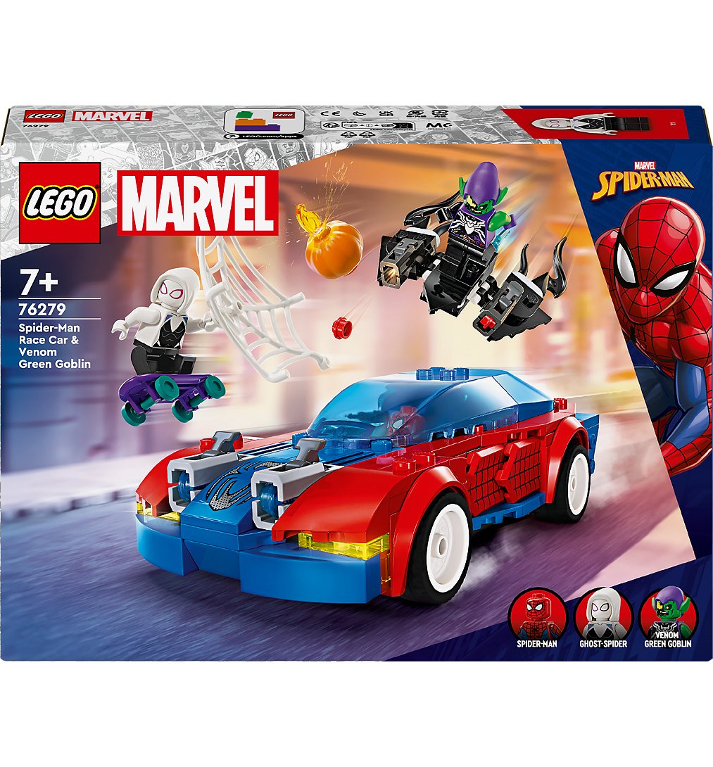 Les fans d'action des Super-Héros, des figurines Marvel et des véhicules super cool seront épatés par ce jouet de construction LEGO Marvel mettant en vedette la voiture de Spider-Man, le planeur du Bouffon Vert et la planche à roulettes de Ghost-Spider. La Voiture de Course de Spider-Man contre le Bouffon Vert Venomisé (76279) est un jouet à offrir en cadeau aux enfants, garçons et filles âgés de 7 ans et plus. Spider-Man, Ghost-Spider et Bouffon Vert s'engagent dans une action rapide en utilisant un assortiment impressionnant de véhicules, d'armes et d'accessoires. La voiture de Spider-Man est équipée de 2 lanceurs de tenons à l'avant, le planeur du Bouffon Vert est doté de 2 lanceurs de tenons et il porte des bombes citrouilles, et Ghost-Spider utilise 2 blasters à main tandis qu'elle chevauche sa planche à roulettes. Spider-Man se balance sur une « corde » de toile flexible et, à l'aide d'une grande toile pliable, il capture les méchants. Les sections amovibles donnent accès à l'intérieur de la voiture, suffisamment spacieux pour accueillir 2 figurines et la planche à roulettes. Pour plus de plaisir numérique, les constructeurs peuvent zoomer, faire pivoter les modèles en 3D et suivre leur progression à l'aide de l'application LEGO Builder, amusante et intuitive.