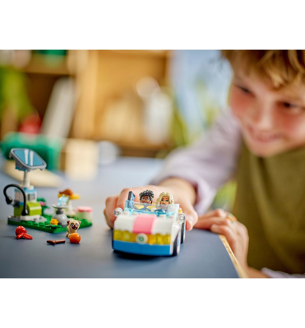 | La boîte contient | • Set de construction LEGO® Friends La voiture électrique et la borne de recharge – Ce set de véhicule pour filles et garçons dès 6 ans inclut 2 mini-poupées, un chien, une voiture et une borne de recharge solaire• Voiture à construire – La voiture possède des sièges pour les mini-poupées et pour Dango le chien et est dotée d’un coffre qui s’ouvre pour ranger des accessoires• Borne de recharge – Le set inclut une borne de recharge solaire grâce à laquelle les enfants peuvent jouer à « recharger » la voiture de manière écologique avec Zac et Nova• 2 mini-poupées – Avec le chien et les mini-poupées de Zac et Nova LEGO® Friends inclus, le jeu créatif peut commencer sans attendre• De multiples accessoires – Ce jouet pour enfants s’accompagned’accessoires, comme une table, 2 chaises, des téléphones, un bâton, une balle, une pomme, un croissant et une gamelle• Une belle idée de cadeau pour enfants – Ce jouet LEGO® est un beau cadeau à offrir à des garçons et des filles qui aiment l’aventure et raconter des histoires• Sets LEGO® Friends pour filles et garçons – Découvrez les autres jouets de construction créative de la gamme LEGO Friends (vendus séparément) conçus pour les enfants qui aiment mettre en scène des histoires d’amitié• Dimensions – Un set de 170 pièces avec une voiture électrique à construire qui mesure plus de 4 cm de haut, 12 cm de long et 6 cm de large |