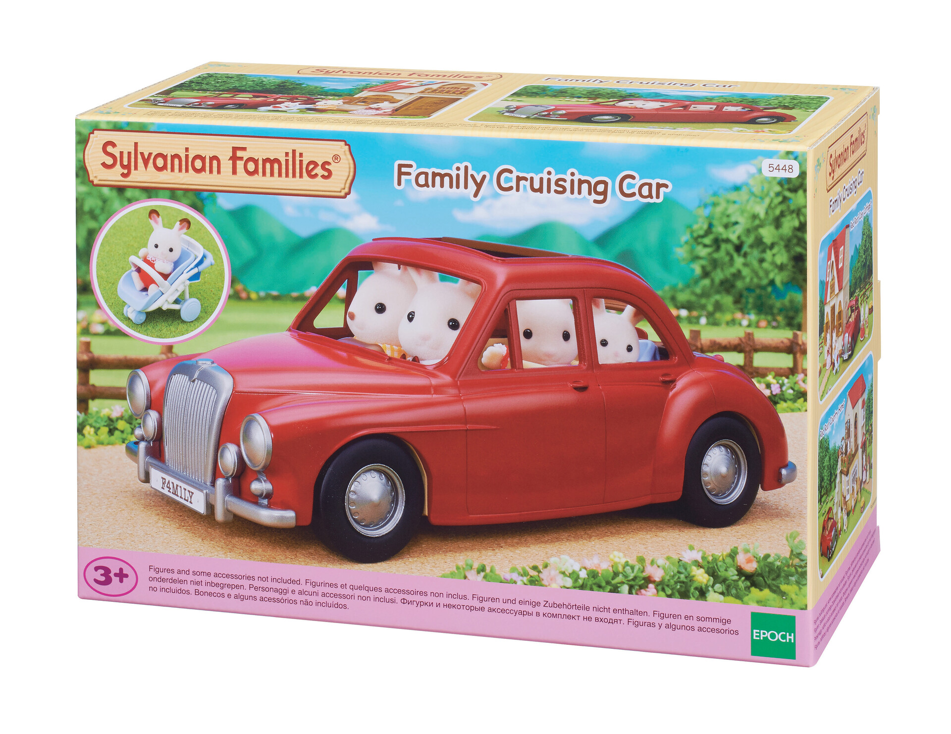 La voiture rouge est un cabriolet à 5 places. Elle peut contenir 2 adultes sur les sièges avant, 2 enfants et 1 bébé sur la banquette arrière. Le toit est décapotable, la porte du coffre et le réservoir d'essence s'ouvrent. Elle est livrée avec une poussette dont le siège peut-être utilisé comme un siège auto. La partie restante de la poussette peut être stockée dans le coffre. Les boissons fournies peuvent être rangées dans le porte-gobelets ou tenues à la main par les Sylvanian.