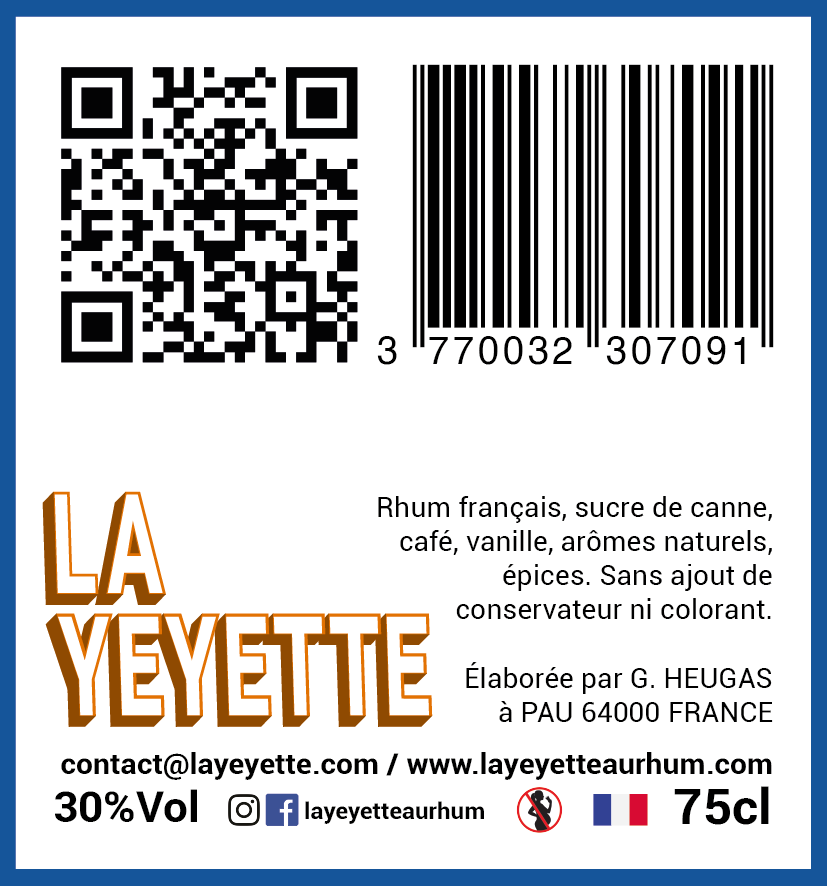 | Libellé | La Yeyette au rhum, Rhum Arrangé Café/Vanille, Fabrication Artisanale, 30% vol. - 75 cl |