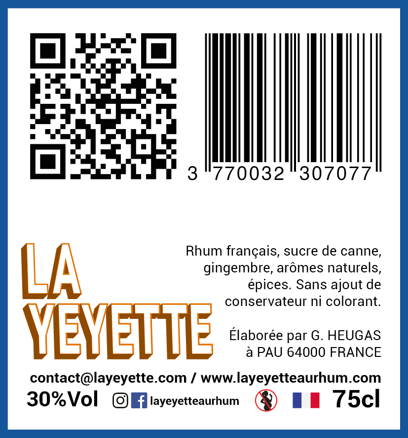 | Libellé | La Yeyette au rhum, Rhum Arrangé Gingembre, Fabrication Artisanale, 30% vol. - 75 cl |