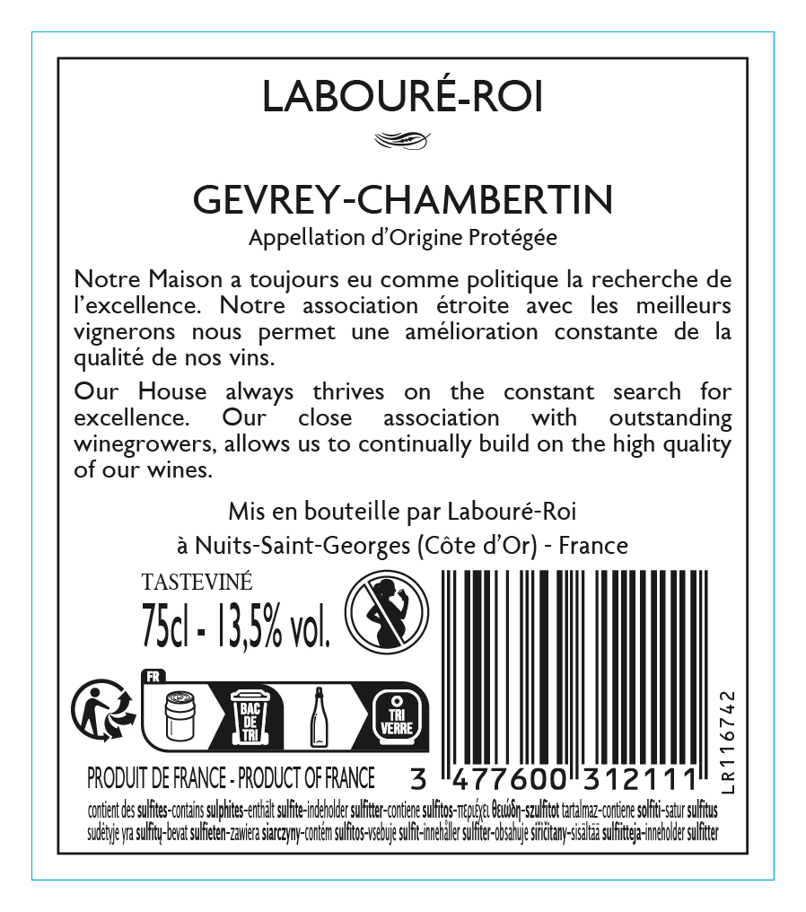| Libellé | Labouré Roi, 2022 - Gevrey-Chambertin AOP - Rouge - 75 cl |