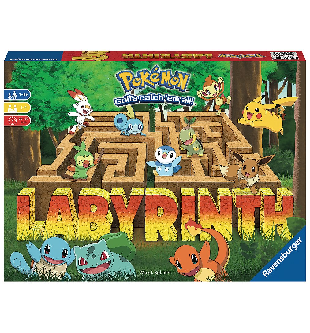 Partez à la chasse aux Pokémon ! Dans ce labyrinthe complètement fou se sont cachés de nombreux Pokémon. À l’aide de Pikachu, Bulbizarre, Salamèche et Carapuce, faites coulisser astucieusement les couloirs du labyrinthe pour attraper les Pokémon que vous recherchez le plus rapidement possible. Celui qui en aura attrapé le plus deviendra le plus grand dresseur ! Une chasse aux images dans un labyrinthe en mouvement. Des règles simples pour un jeu palpitant ! Dès 7 ans.