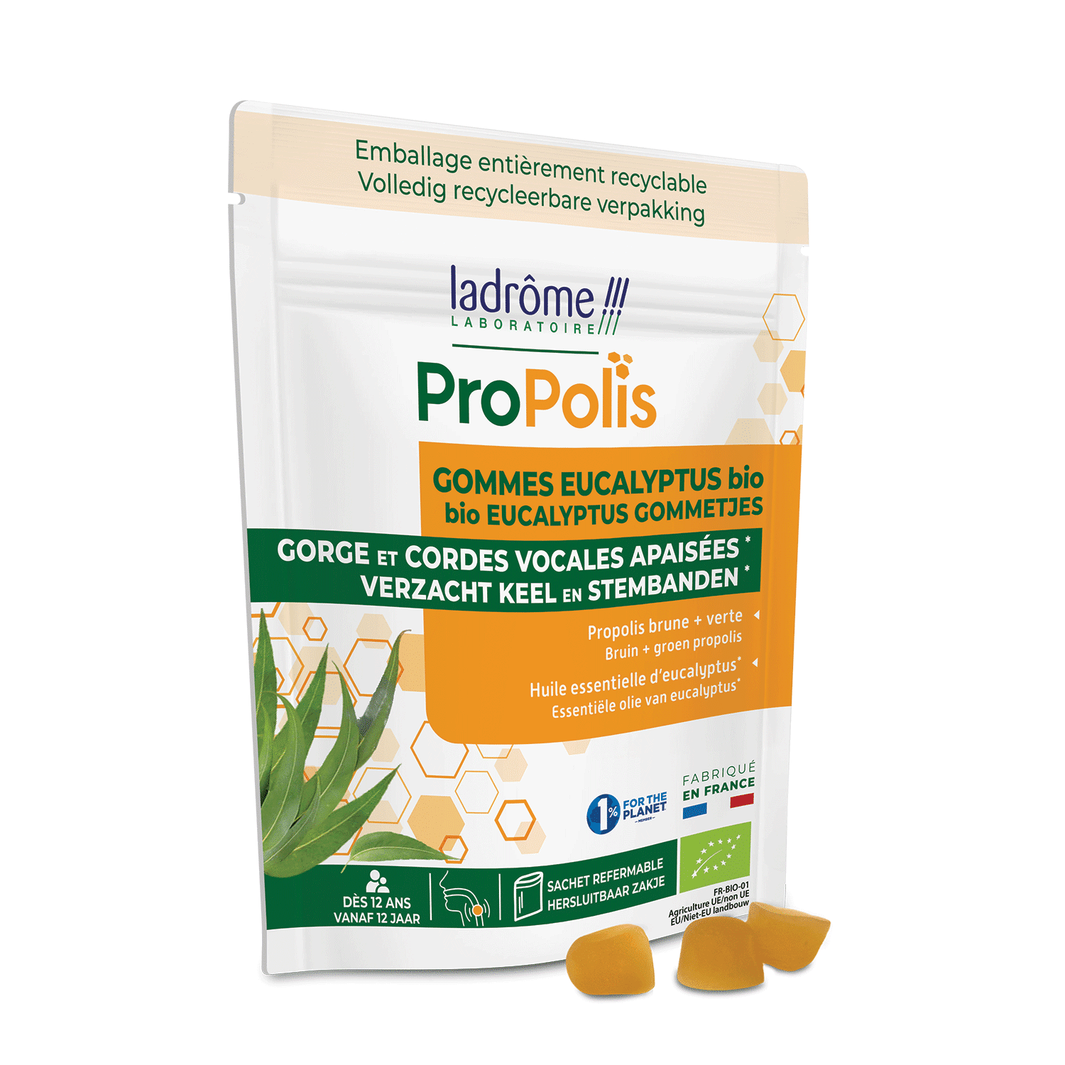 | Libellé | Ladrome Gommes Propolis Eucalytpus Bio Doypack 45 g |