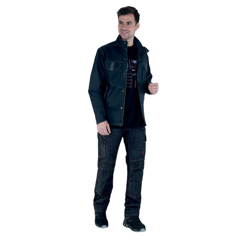 Le Blouson de travail mixte Keme de Lafont allie modernité et confort. Fabriqué avec un mélange de stretch (50% coton, 45% polyester, 5% Eol) et un grammage de 310 g/m2, ce blouson offre une liberté de mouvement optimale. Fermé par zip, avec col montant, 2 poches poitrine, 2 poches basses, 1 poche intérieure, 1 poche sur la manche, des soufflets d'aisance dans le dos, des poignets à grippers, et des pattes de réglage à la ceinture, il est à la fois fonctionnel et élégant.