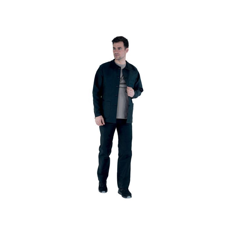 La Veste de travail Homme Faurel de Lafont, à la coupe classique, est fabriquée en moleskine (100% coton traité sanfor, 410g/m2) pour une résistance exceptionnelle. Dotée d'un col chevalière, d'une fermeture par boutons, de manches montées demi-pivot, de poignets boutonnés, d'1 poche poitrine, d'1 poche intérieure, et de 2 poches basses, cette veste offre le parfait équilibre entre élégance et fonctionnalité.